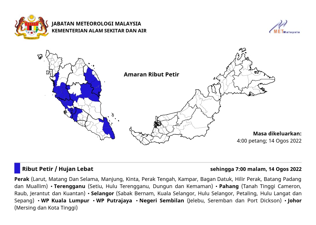 Amaran Ribut Petir 14/08/2022 1600 PM1 Norbazliah Cuaca 14 August 2022 Hits: 332 Rating: ( 0 Rating ) Please Rate Vote 1 Vote 2 Vote 3 Vote 4 Vote 5 Lihat / Muat Turun JPG Facebook Twitter Prev Next