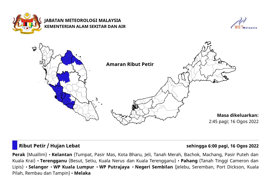 Amaran Ribut Petir 16/08/2022 0245 AM Norbazliah Cuaca 16 August 2022 Hits: 393 Rating: ( 0 Rating ) Please Rate Vote 1 Vote 2 Vote 3 Vote 4 Vote 5 Lihat / Muat Turun JPG Facebook Twitter Prev Next