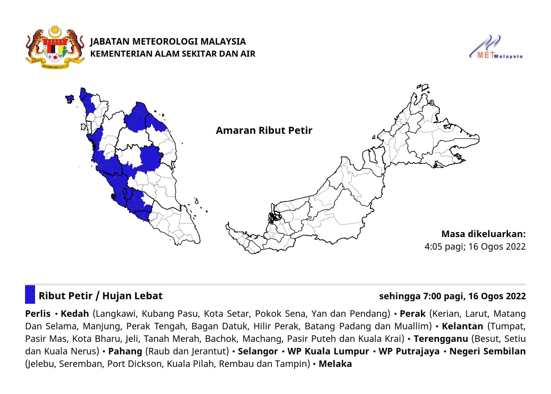 Amaran Ribut Petir 16/08/2022 0405 AM Norbazliah Cuaca 16 August 2022 Hits: 300 Rating: ( 0 Rating ) Please Rate Vote 1 Vote 2 Vote 3 Vote 4 Vote 5 Lihat / Muat Turun JPG Facebook Twitter Prev Next