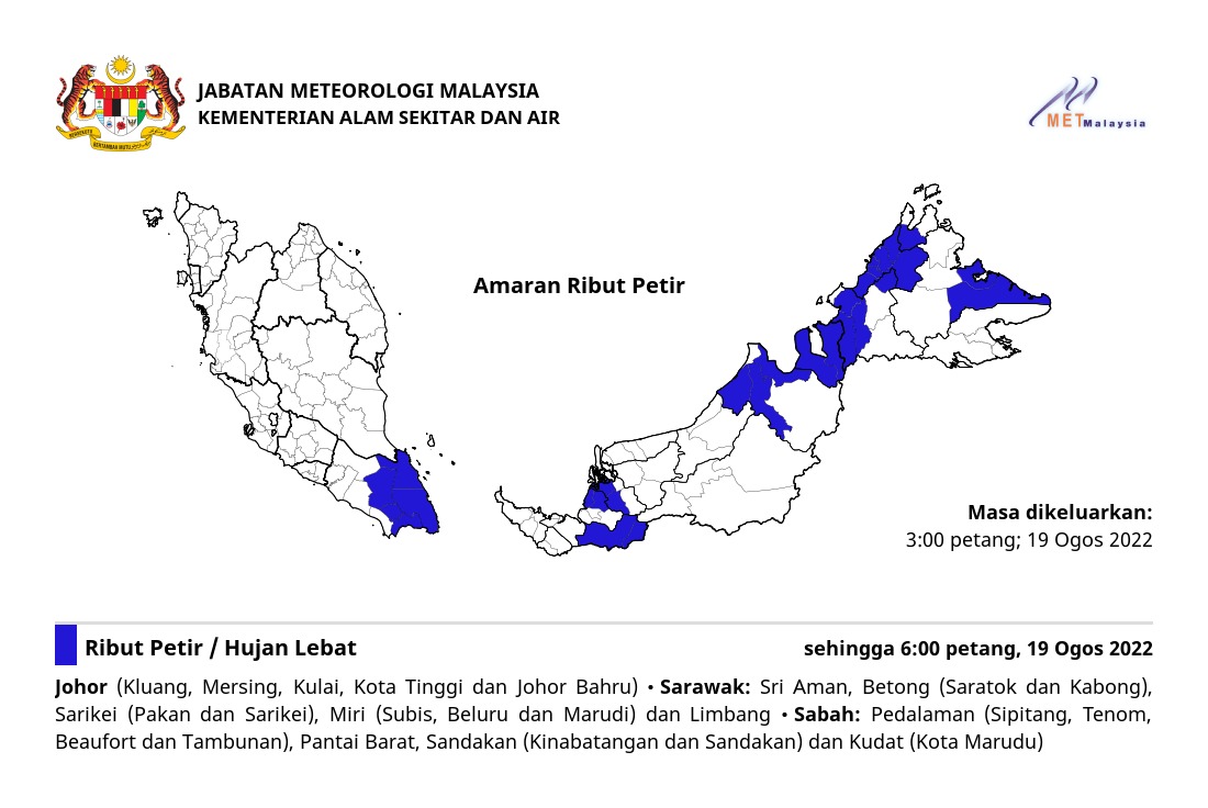Amaran Ribut Petir 19/08/2022 1500 PM Norbazliah Cuaca 19 August 2022 Hits: 248 Rating: ( 0 Rating ) Please Rate Vote 1 Vote 2 Vote 3 Vote 4 Vote 5 Lihat / Muat Turun JPG Facebook Twitter Prev Next