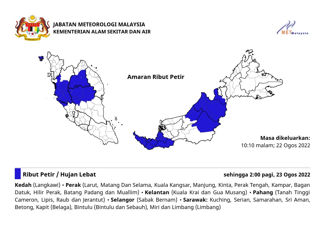 Amaran Ribut Petir 22/08/2022 2210 PM Norbazliah Cuaca 22 August 2022 Hits: 323 Rating: ( 0 Rating ) Please Rate Vote 1 Vote 2 Vote 3 Vote 4 Vote 5 Lihat / Muat Turun JPG Facebook Twitter Prev Next