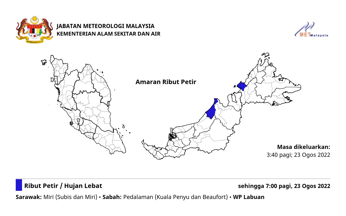 Amaran Ribut Petir 23/08/2022 0340 AM Norbazliah Cuaca 23 August 2022 Hits: 346 Rating: ( 0 Rating ) Please Rate Vote 1 Vote 2 Vote 3 Vote 4 Vote 5 Lihat / Muat Turun JPG Facebook Twitter Prev Next