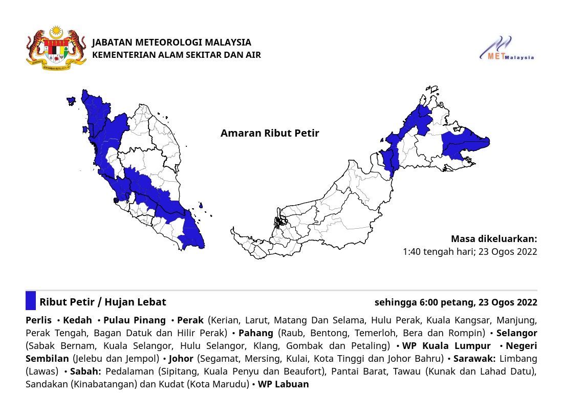 Amaran Ribut Petir 23/08/2022 1340 PM Norbazliah Cuaca 23 August 2022 Hits: 325 Rating: ( 0 Rating ) Please Rate Vote 1 Vote 2 Vote 3 Vote 4 Vote 5 Lihat / Muat Turun JPG Facebook Twitter Prev Next
