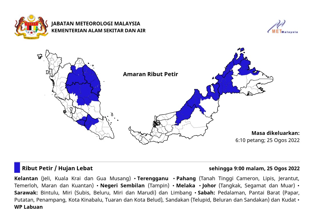 Amaran Ribut Petir 25/08/2022 1810 PM Norbazliah Cuaca 25 August 2022 Hits: 308 Rating: ( 0 Rating ) Please Rate Vote 1 Vote 2 Vote 3 Vote 4 Vote 5 Lihat / Muat Turun JPG Facebook Twitter Prev Next