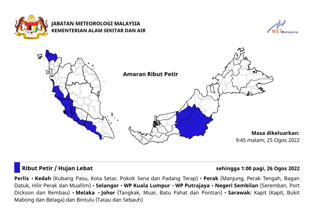 Amaran Ribut Petir 25/08/2022 2145 PM Norbazliah Cuaca 25 August 2022 Hits: 438 Rating: ( 0 Rating ) Please Rate Vote 1 Vote 2 Vote 3 Vote 4 Vote 5 Lihat / Muat Turun JPG Facebook Twitter Prev Next