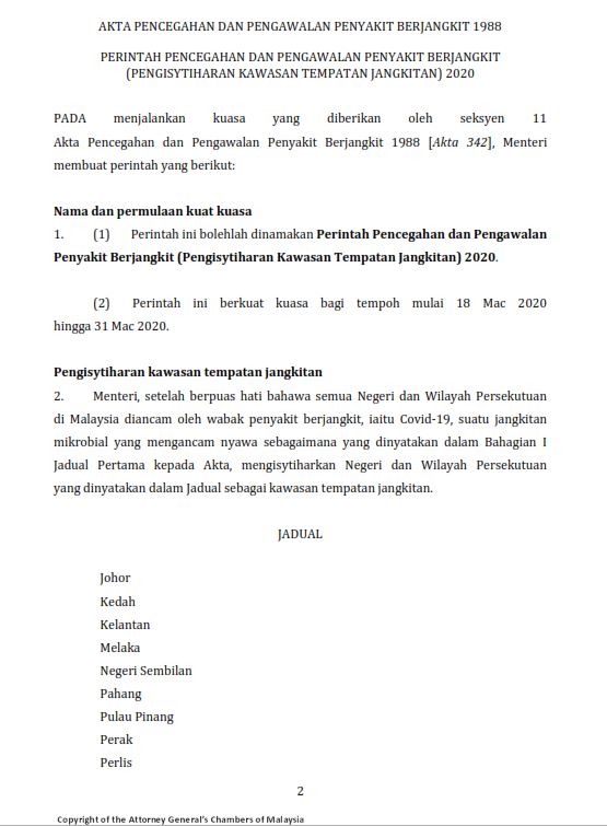 Warta Kerajaan Persekutuan 17/03/2020 Aiman Siaran Media 17 March 2020 Hits: 1350 Rating: ( 0 Rating ) Please Rate Vote 1 Vote 2 Vote 3 Vote 4 Vote 5 Lihat / Muat Turun PDF Muat Turun JPG 1 Muat Turun JPG 2 Facebook Twitter Prev Next