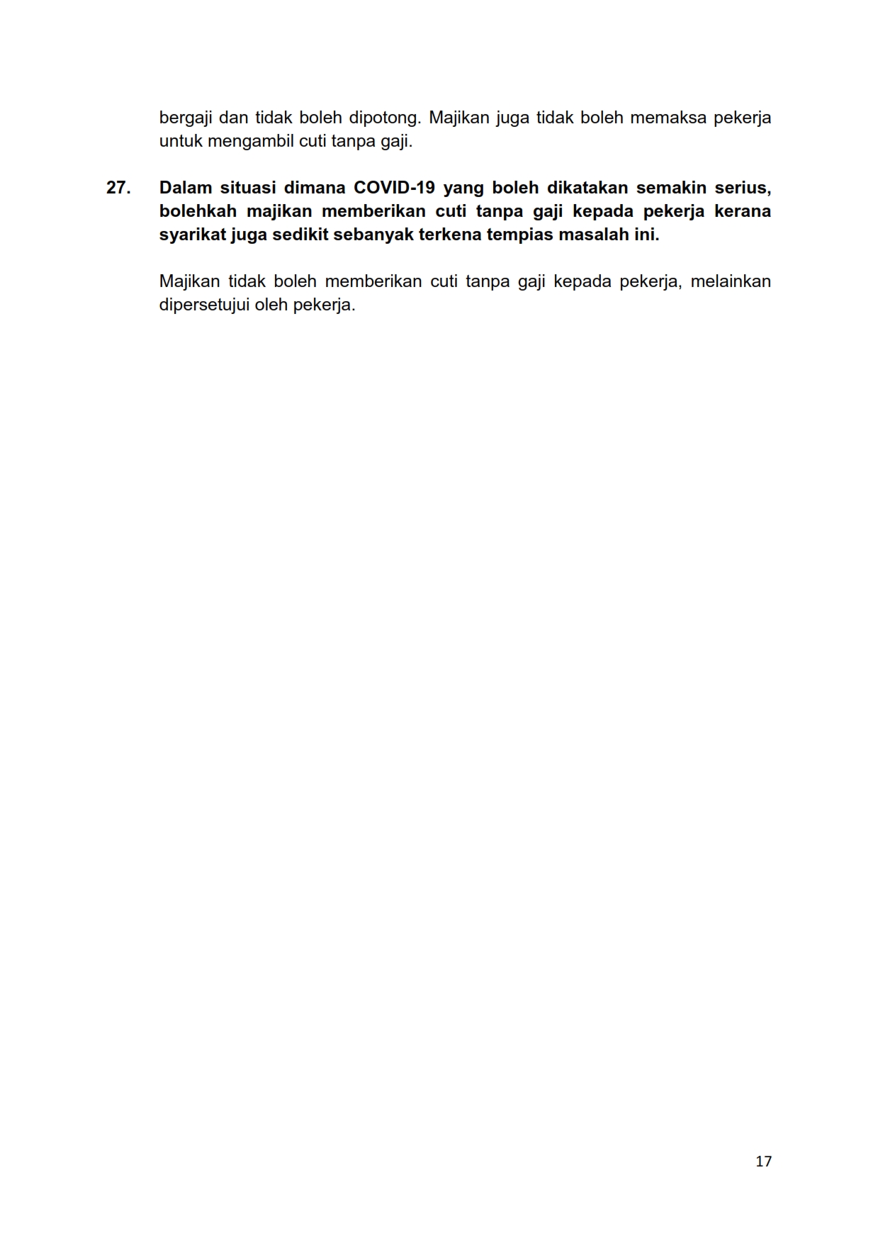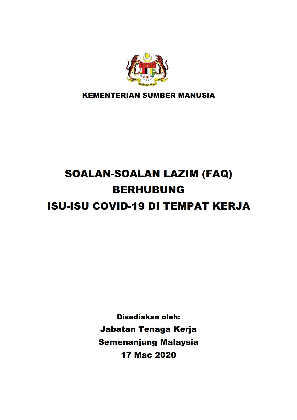 Soalan Lazim FAQ Berhubung Isu-Isu COVID-19 Di Tempat Kerja 17/03/2020 Aiman FAQ 17 March 2020 Hits: 1886 Rating: ( 0 Rating ) Please Rate Vote 1 Vote 2 Vote 3 Vote 4 Vote 5 Lihat / Muat Turun PDF Muat Turun JPG 1 Muat Turun JPG 2 Facebook Twitter Prev Next