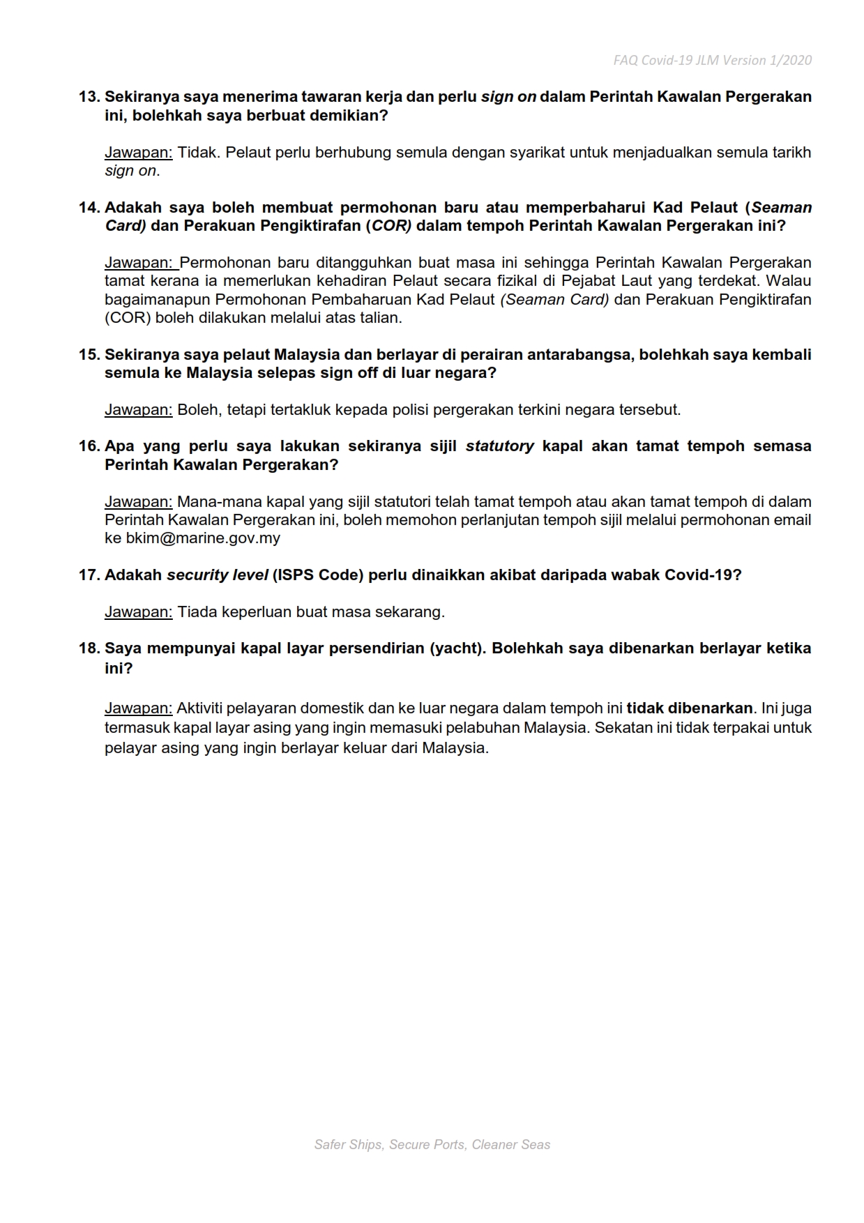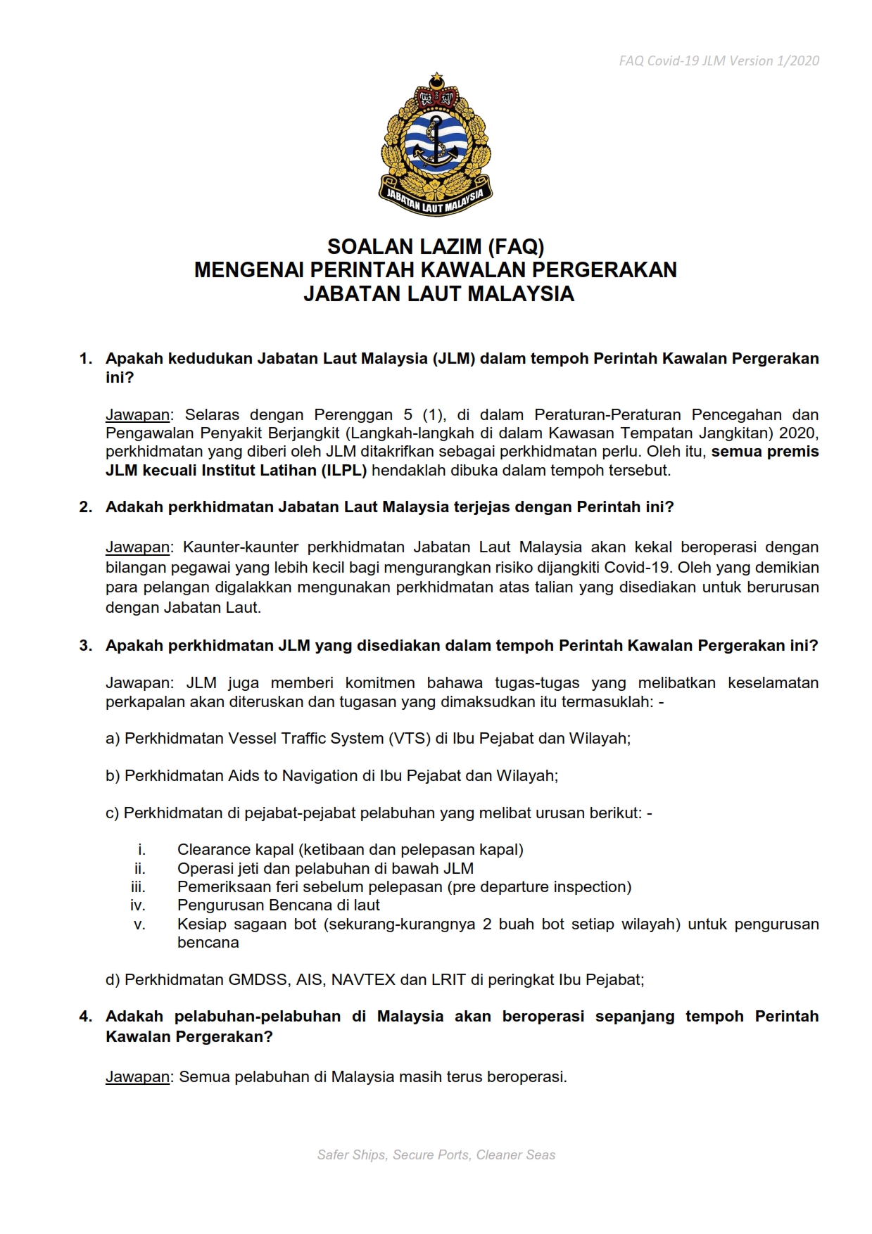 Soalan Lazim FAQ Mengenai Perintah Kawalan Pergerakan Jabatan Laut Malaysia 19/03/2020 Aiman FAQ 19 March 2020 Hits: 1133 Rating: ( 0 Rating ) Please Rate Vote 1 Vote 2 Vote 3 Vote 4 Vote 5 Lihat / Muat Turun PDF Facebook Twitter Prev Next