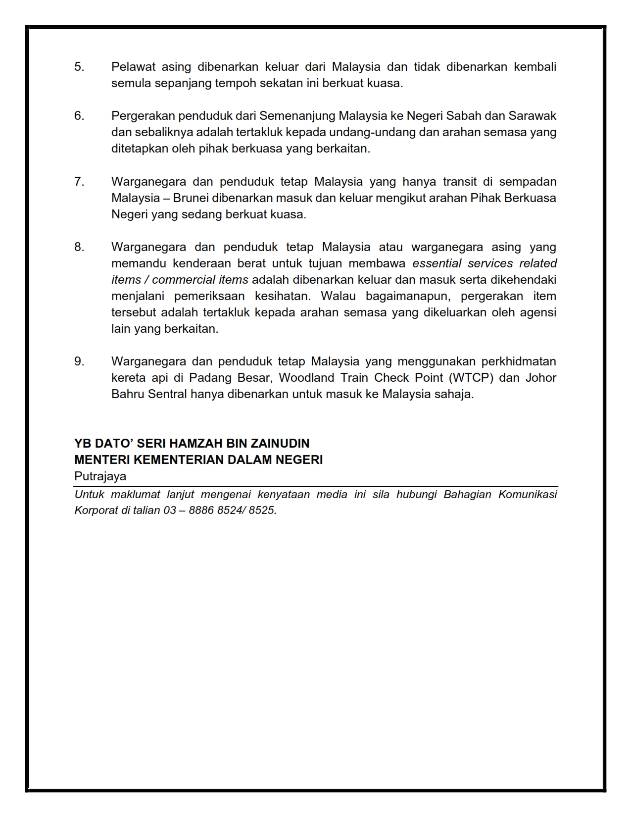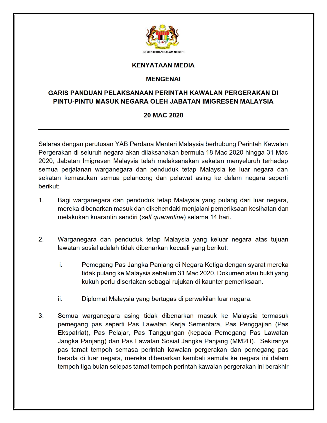 Kenyataan Media Menteri KDN 20/03/2020 Asrul Siaran Media 20 March 2020 Hits: 777 Rating: ( 0 Rating ) Please Rate Vote 1 Vote 2 Vote 3 Vote 4 Vote 5 Lihat / Muat Turun PDF Facebook Twitter Prev Next