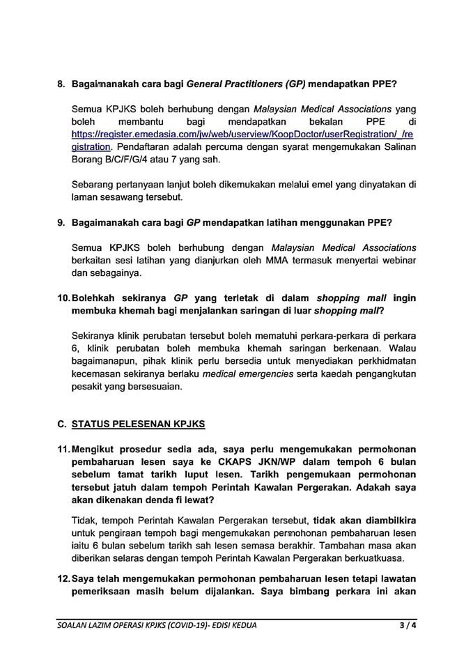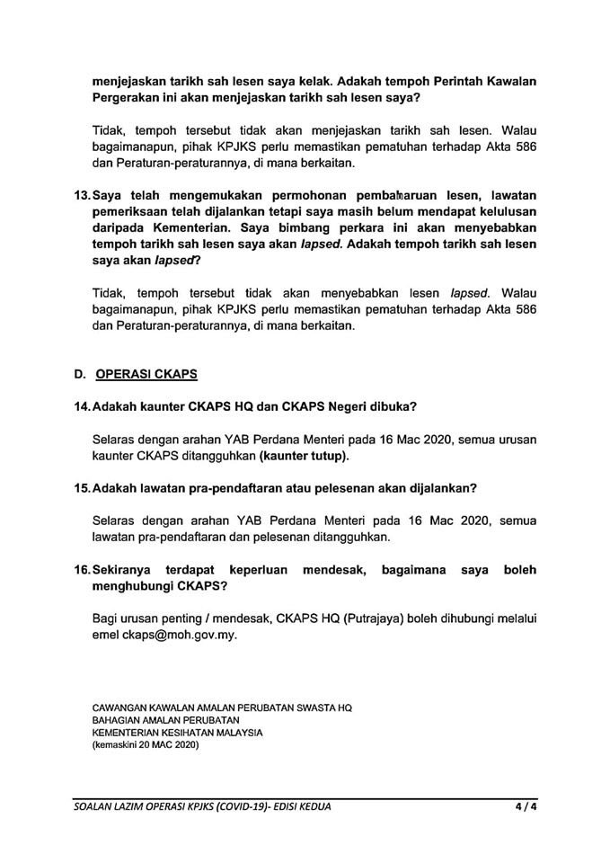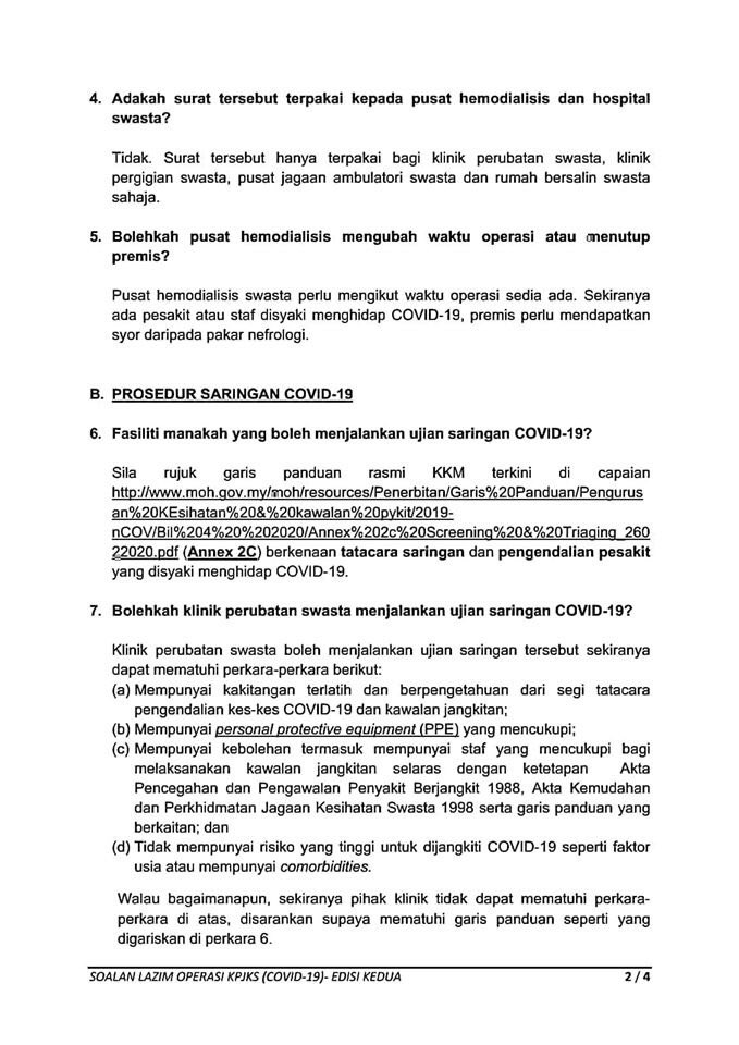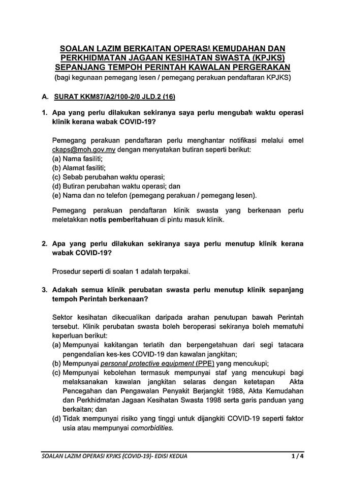 Soalan Lazim FAQ Mengenai Operasi Kemudahan & Perkhidmatan Jagaan Kesihatan Swasta 21/03/2020 Asrul FAQ 21 March 2020 Hits: 1761 Rating: ( 0 Rating ) Please Rate Vote 1 Vote 2 Vote 3 Vote 4 Vote 5 Facebook Twitter Prev Next