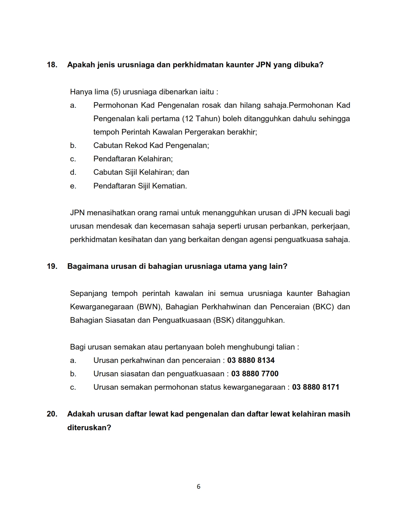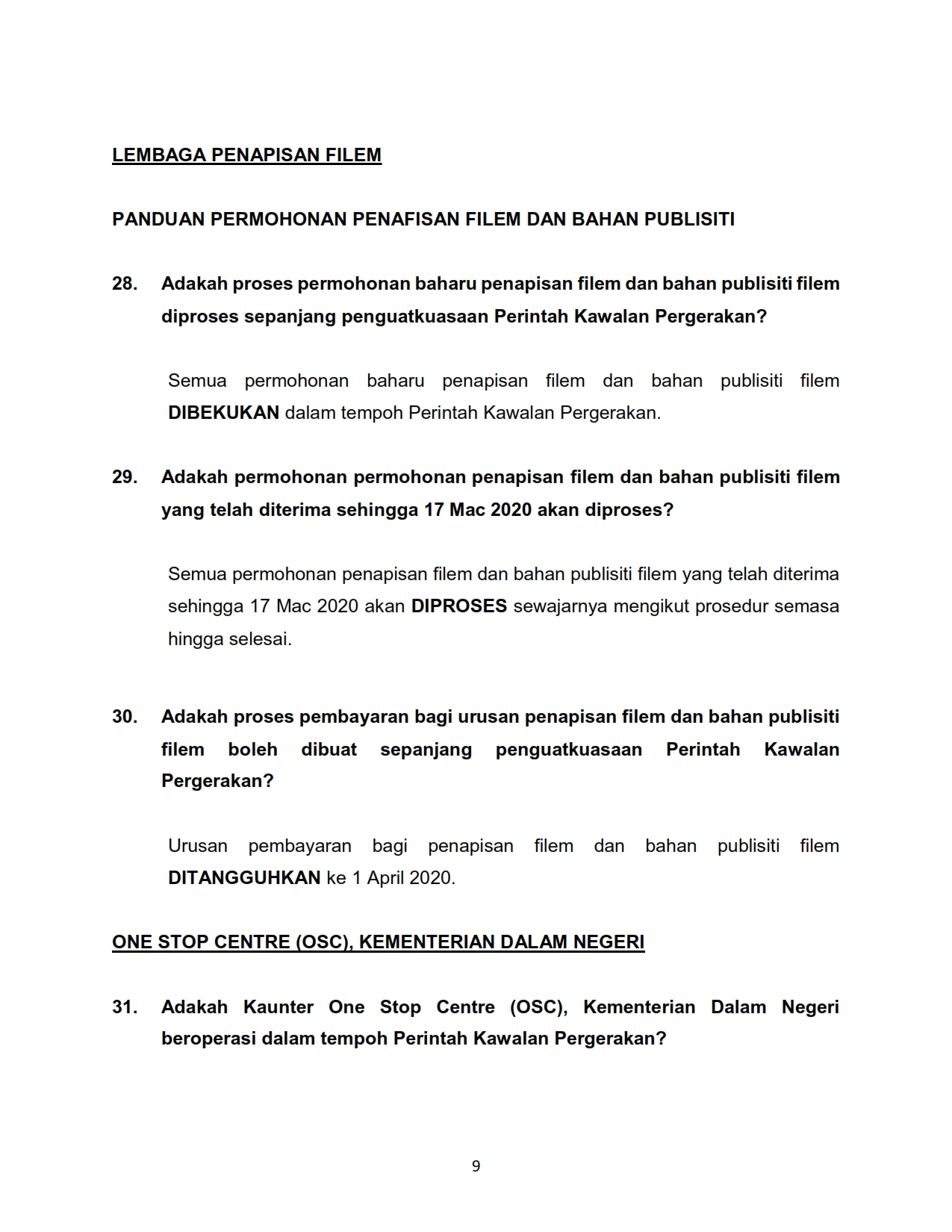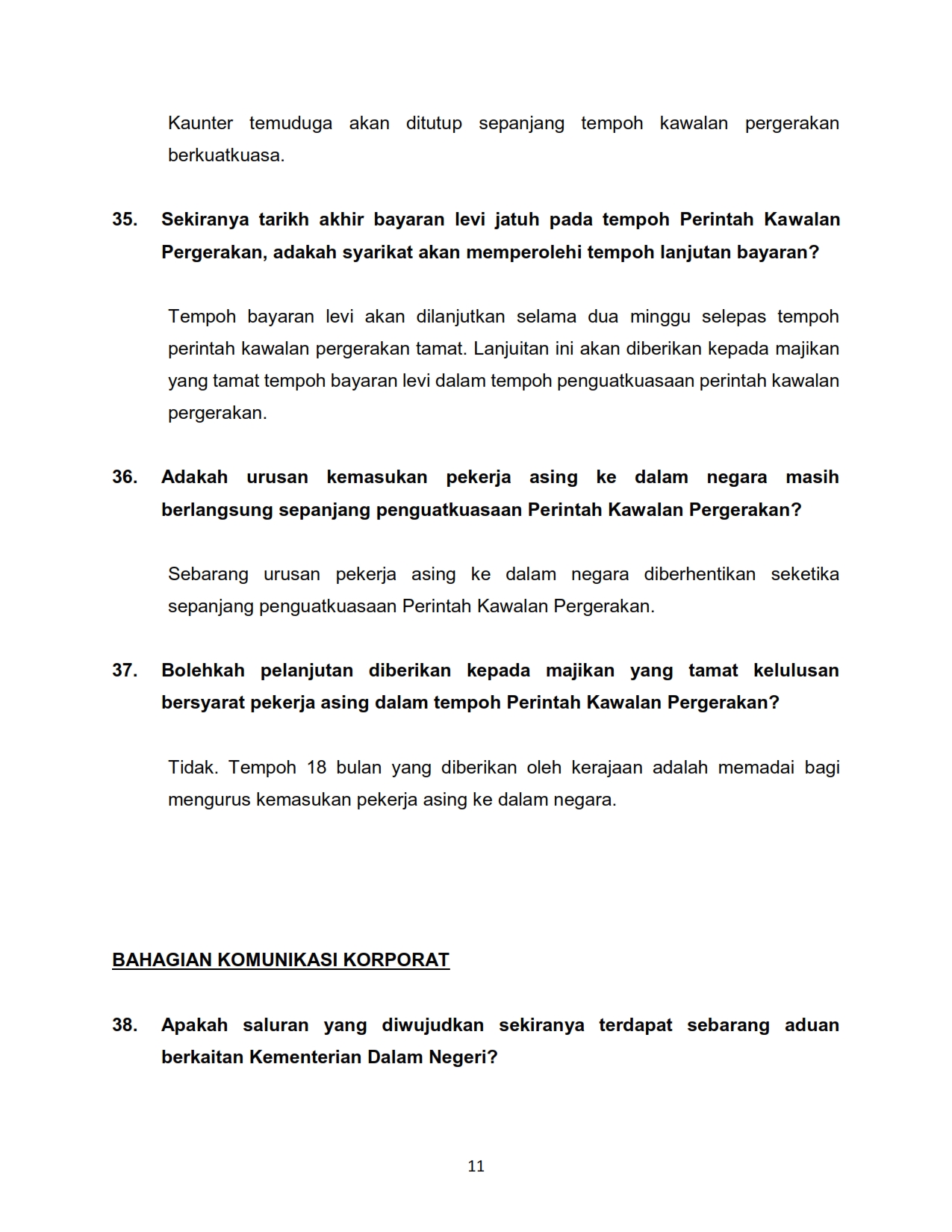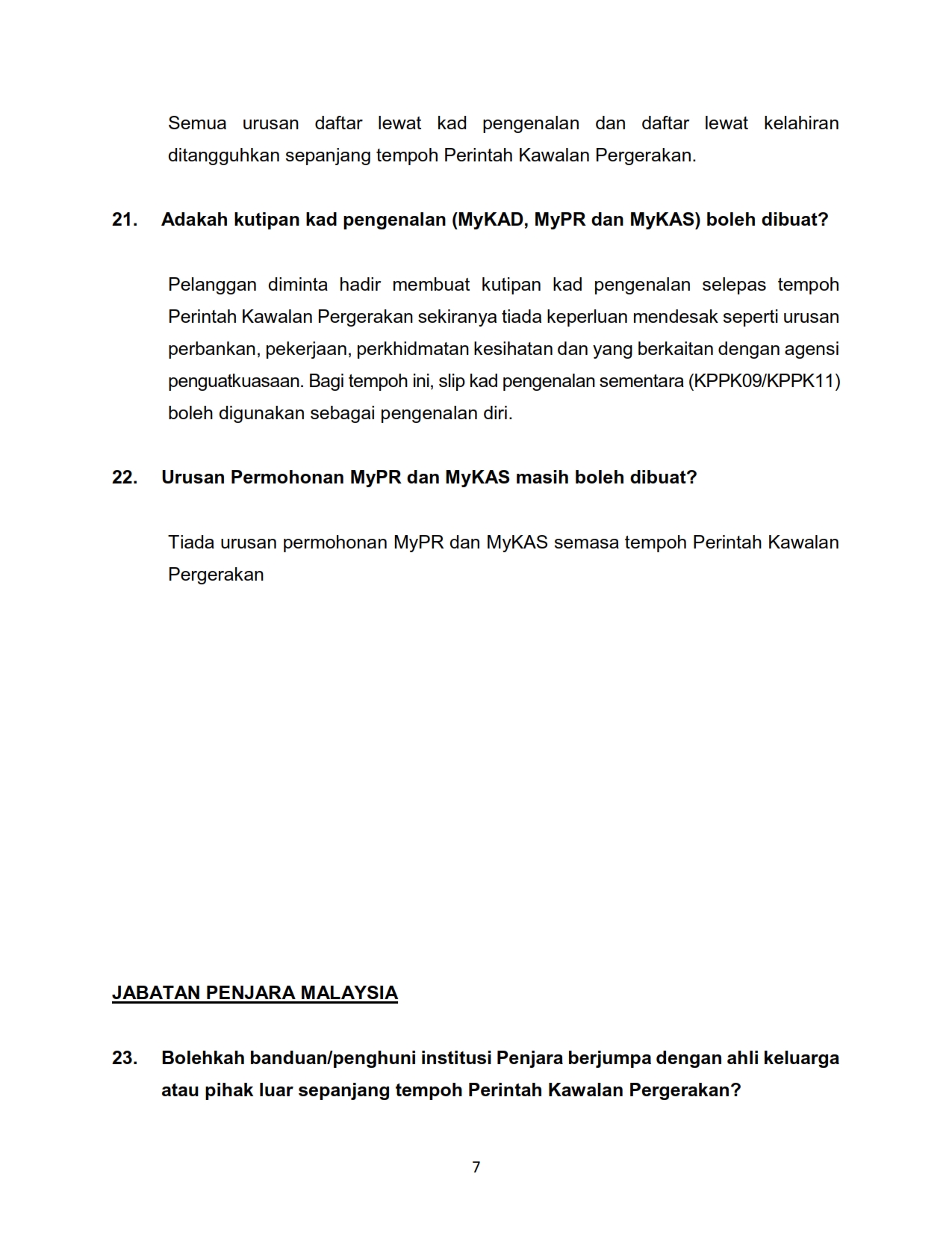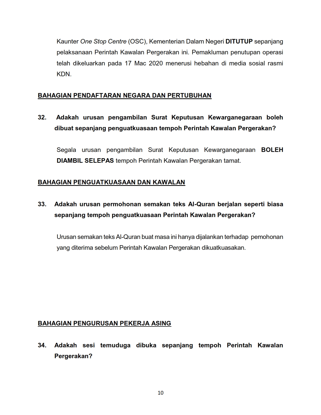 Soalan Lazim FAQ Berkaitan Perintah Kawalan Pergerakan Kementerian Dalam Negeri 21/03/2020 Aiman FAQ 21 March 2020 Hits: 1363 Rating: ( 0 Rating ) Please Rate Vote 1 Vote 2 Vote 3 Vote 4 Vote 5 /bencana2/images/ndcc/documents/covid19/faq/SIARAN_MEDIA_KKM_20200322_01.pdf Facebook Twitter Prev Next