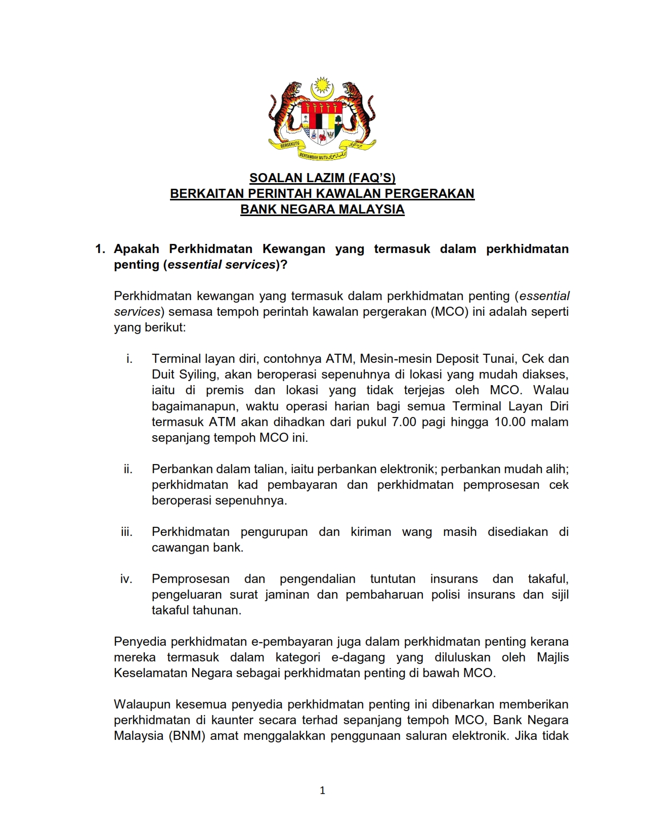 Soalan Lazim FAQ Berkaitan Perintah Kawalan Pergerakan Bank Negara Malaysia 22/03/2020 Aiman FAQ 22 March 2020 Hits: 1308 Rating: ( 0 Rating ) Please Rate Vote 1 Vote 2 Vote 3 Vote 4 Vote 5 /bencana2/images/ndcc/documents/covid19/faq/SIARAN_MEDIA_KKM_20200322_2.pdf Facebook Twitter Prev Next