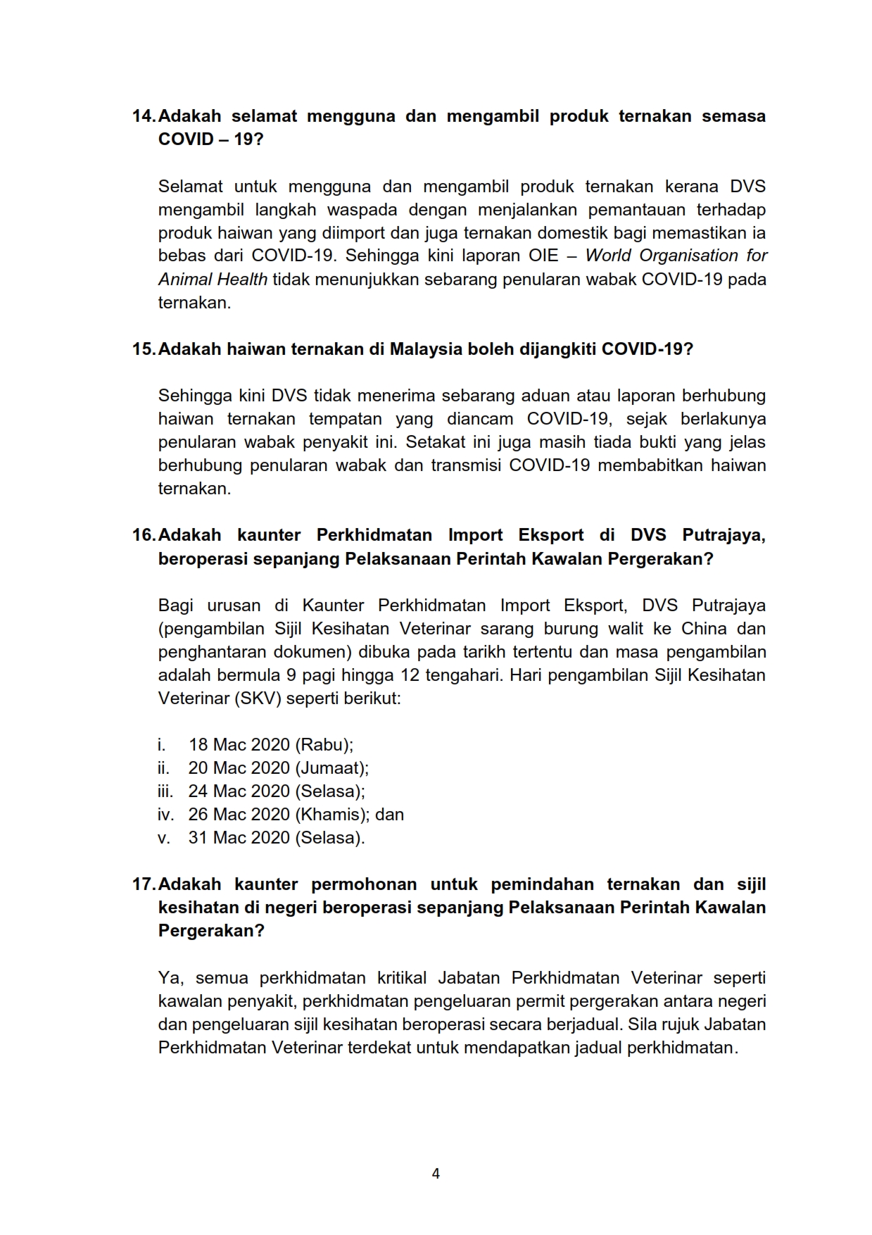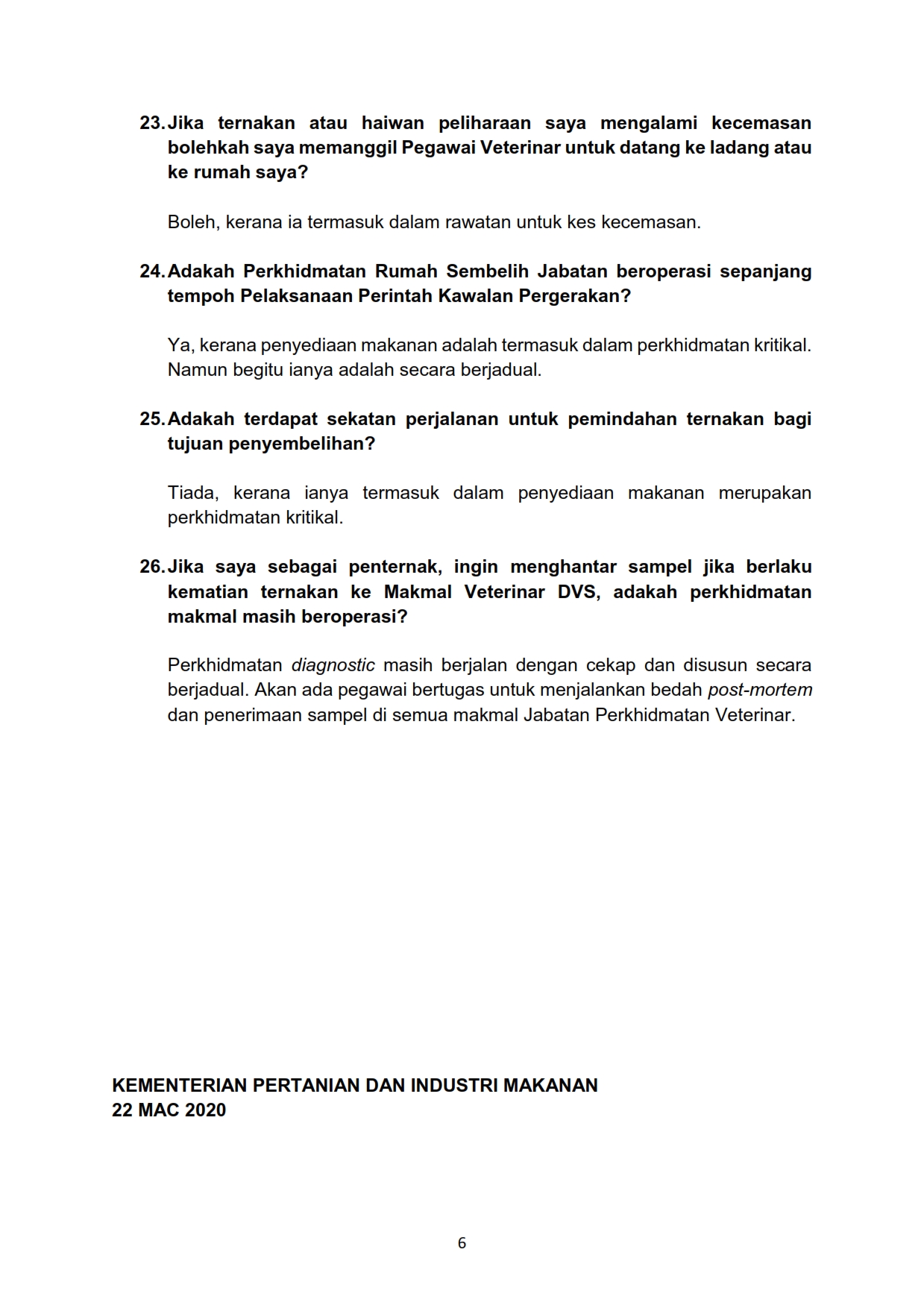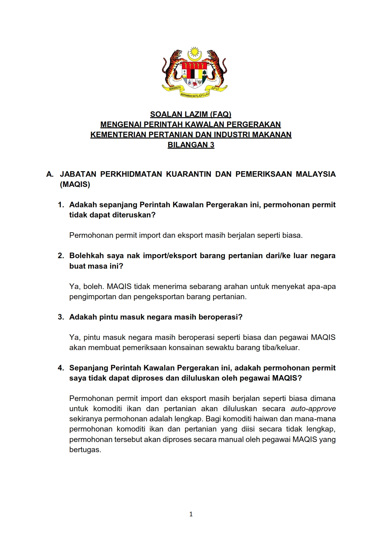 Soalan Lazim FAQ Berkaitan Perintah Kawalan Pergerakan Kementerian Pertanian Dan Industri Makanan Bil. 3 22/03/2020 Aiman FAQ 22 March 2020 Hits: 1410 Rating: ( 0 Rating ) Please Rate Vote 1 Vote 2 Vote 3 Vote 4 Vote 5 /bencana2/images/ndcc/documents/covid19/faq/SIARAN_MEDIA_KKM_20200322_3.pdf Facebook Twitter Prev Next