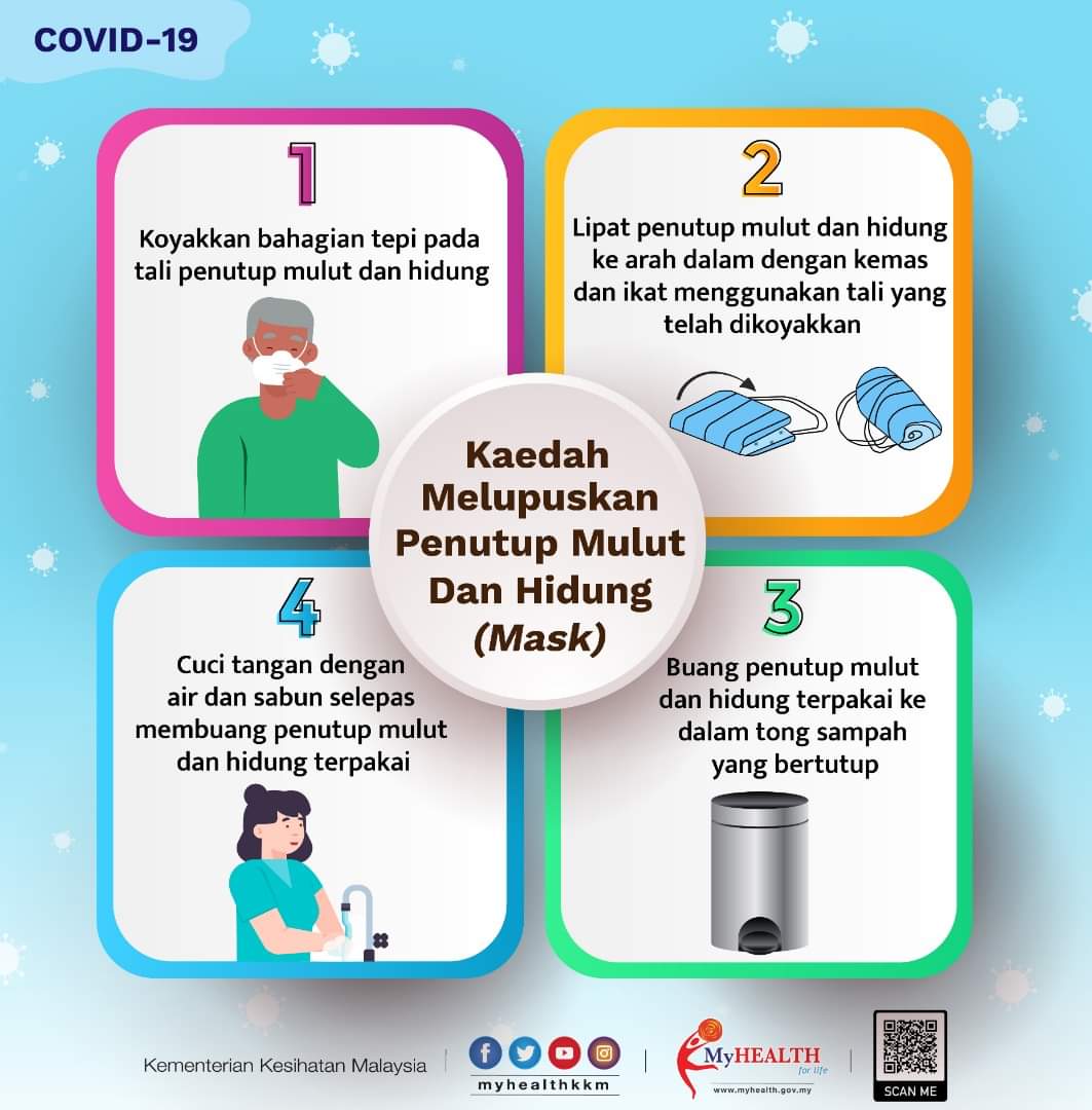 COVID-19 - Kaedah Melupuskan Penutup Mulut & Hidung (MASK) 25/03/2020 Asrul Nasihat 25 March 2020 Hits: 878 Rating: ( 0 Rating ) Please Rate Vote 1 Vote 2 Vote 3 Vote 4 Vote 5 Lihat / Muat Turun JPG Facebook Twitter Prev Next