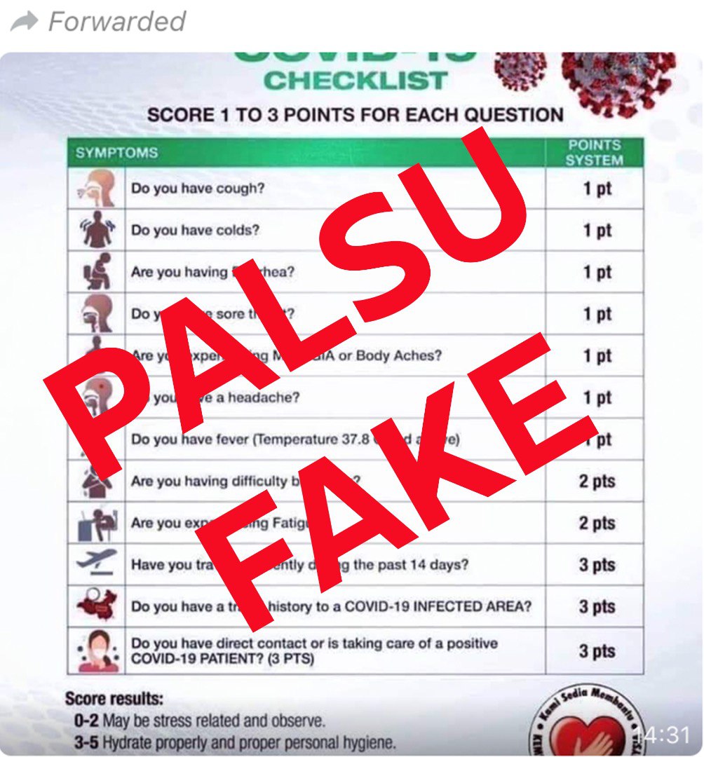 COVID-19 - Larangan Penyebaran Maklumat Palsu 25/03/2020 Aiman Nasihat 25 March 2020 Hits: 1234 Rating: ( 0 Rating ) Please Rate Vote 1 Vote 2 Vote 3 Vote 4 Vote 5 Lihat / Muat Turun JPG Facebook Twitter Prev Next