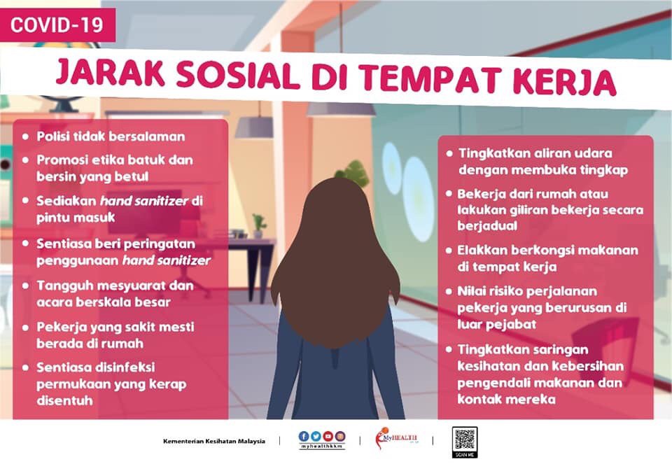 COVID-19 - Jarak Sosial Di Tempat Kerja 26/03/2020 Asrul Nasihat 26 March 2020 Hits: 1208 Rating: ( 0 Rating ) Please Rate Vote 1 Vote 2 Vote 3 Vote 4 Vote 5 Lihat / Muat Turun JPG Facebook Twitter Prev Next
