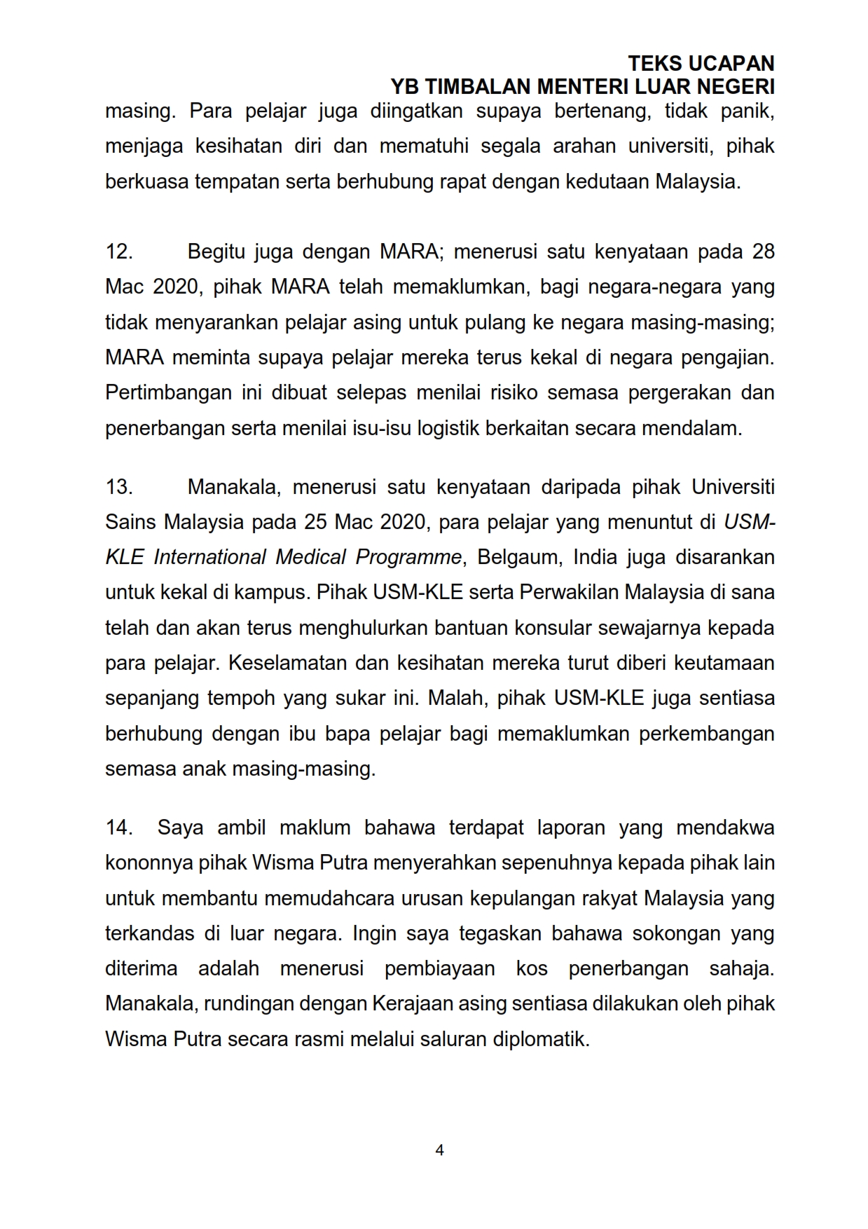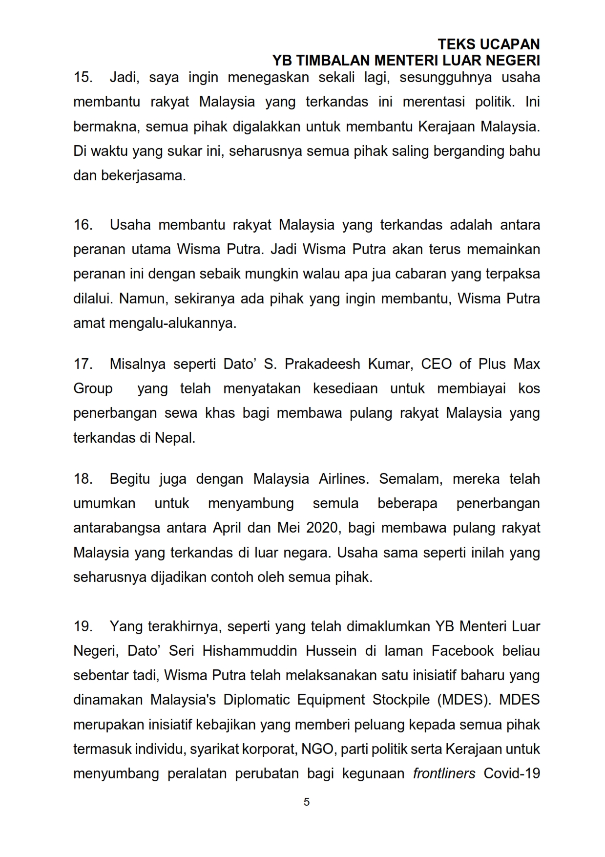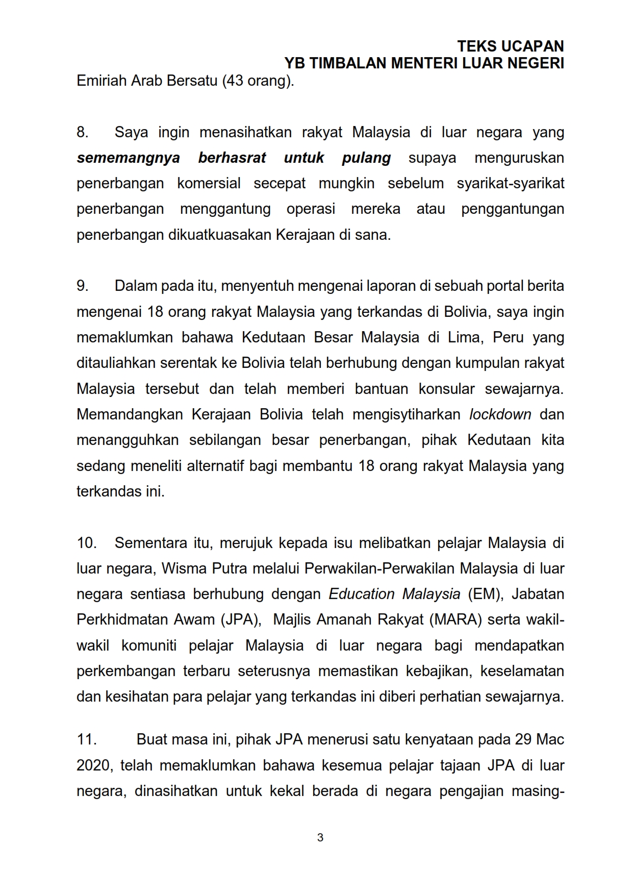 Teks Ucapan YB Timbalan Menteri Luar Negeri 31/03/2020 0300PM Aiman Siaran Media 31 March 2020 Hits: 1724 Rating: ( 0 Rating ) Please Rate Vote 1 Vote 2 Vote 3 Vote 4 Vote 5 Lihat / Muat Turun PDF Facebook Twitter Prev Next