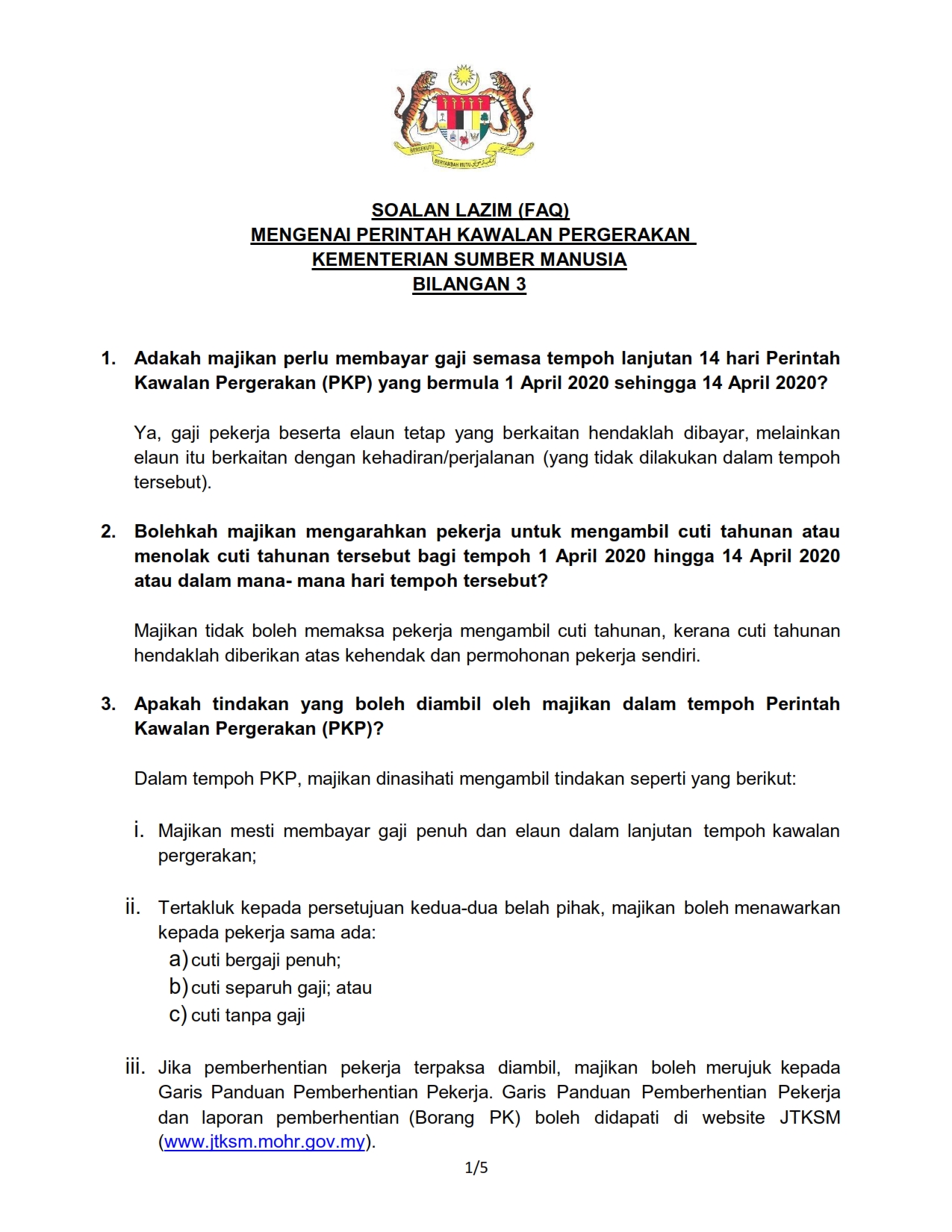 FAQ - Berkaitan Perintah Kawalan Pergerakan KSM Bil.3 31/03/2020 Aiman FAQ 31 March 2020 Hits: 1654 Rating: ( 1 Rating ) User Rating: 5 / 5 Please Rate Vote 1 Vote 2 Vote 3 Vote 4 Vote 5 /bencana2/images/ndcc/documents/covid19/faq/SIARAN_MEDIA_KKM_20200331_10.pdf Facebook Twitter Prev Next