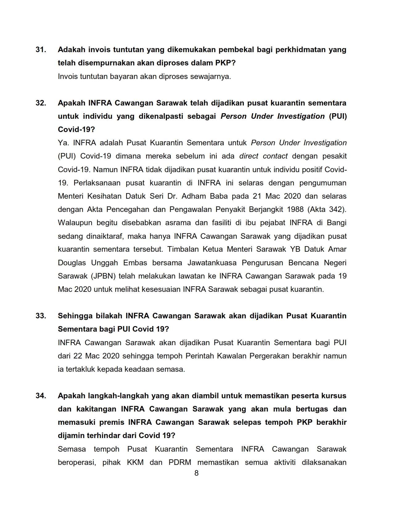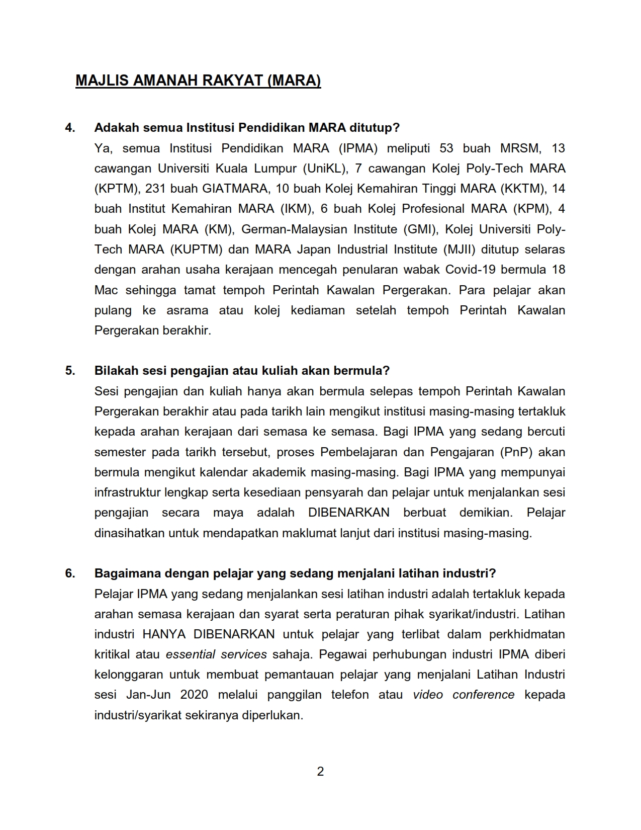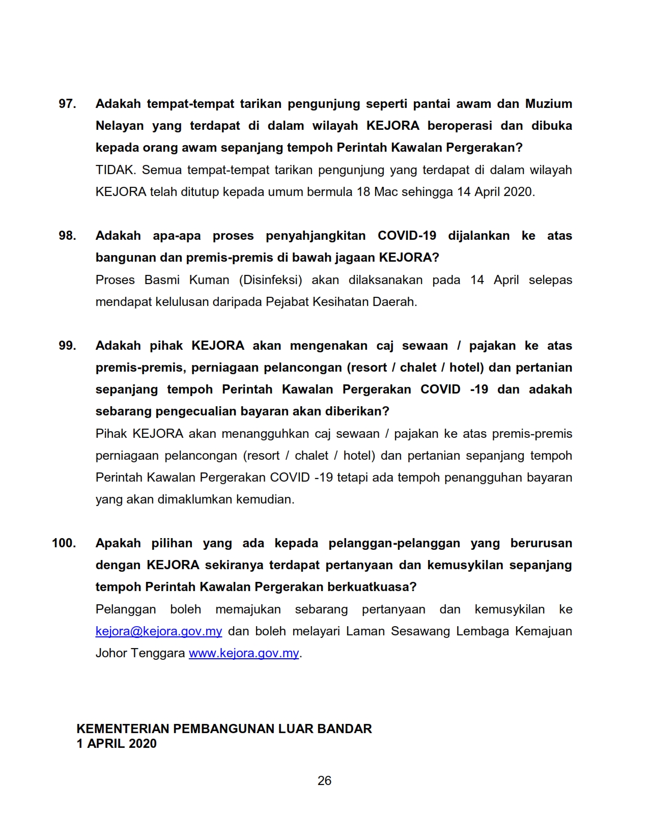 FAQ - Berkaitan Perintah Kawalan Pergerakan KPLB Bil.2 01/04/2020 Aiman FAQ 01 April 2020 Hits: 1782 Rating: ( 0 Rating ) Please Rate Vote 1 Vote 2 Vote 3 Vote 4 Vote 5 /bencana2/images/ndcc/documents/covid19/faq/SIARAN_MEDIA_KKM_20200401_10.pdf Facebook Twitter Prev Next