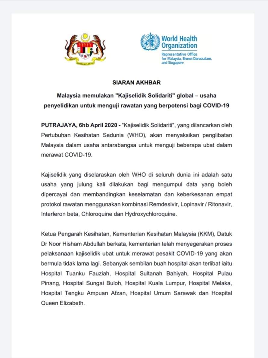 Siaran Akhbar KKM 06/04/2020 Aiman Siaran Media 06 April 2020 Hits: 1366 Rating: ( 0 Rating ) Please Rate Vote 1 Vote 2 Vote 3 Vote 4 Vote 5 Lihat / Muat Turun JPG Facebook Twitter Prev Next