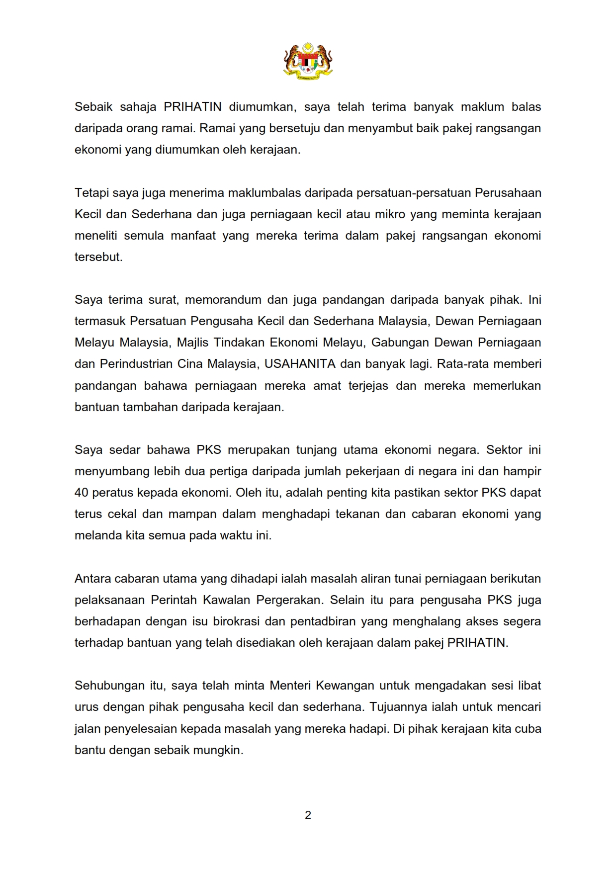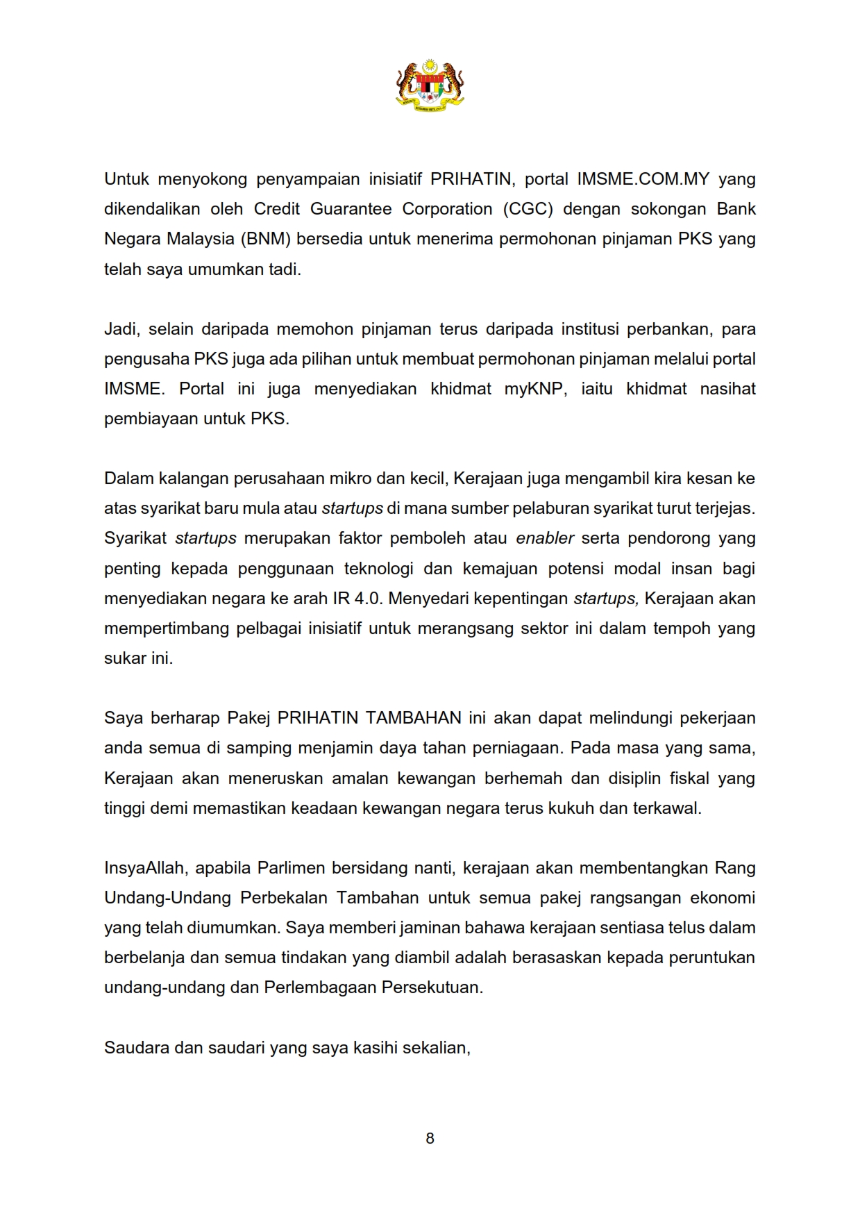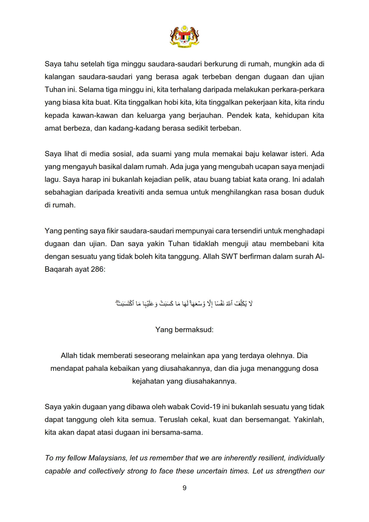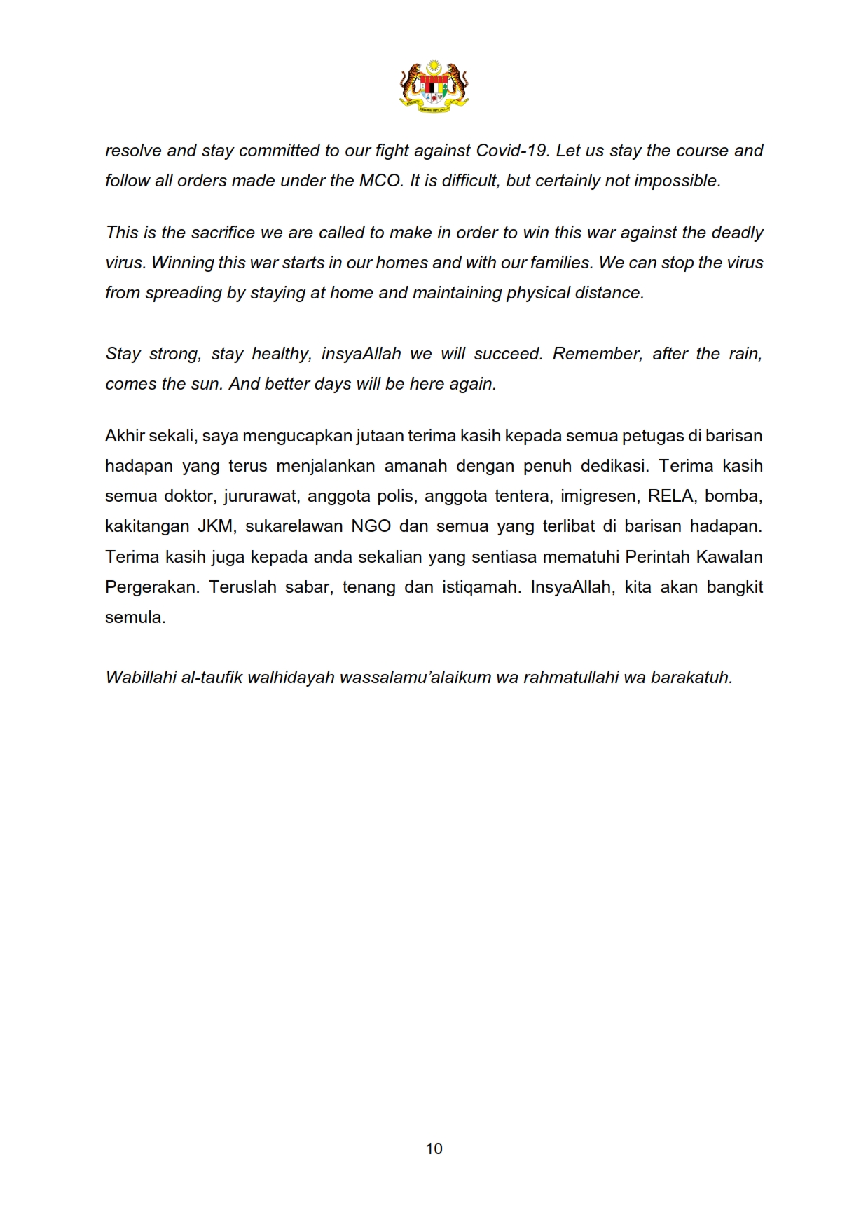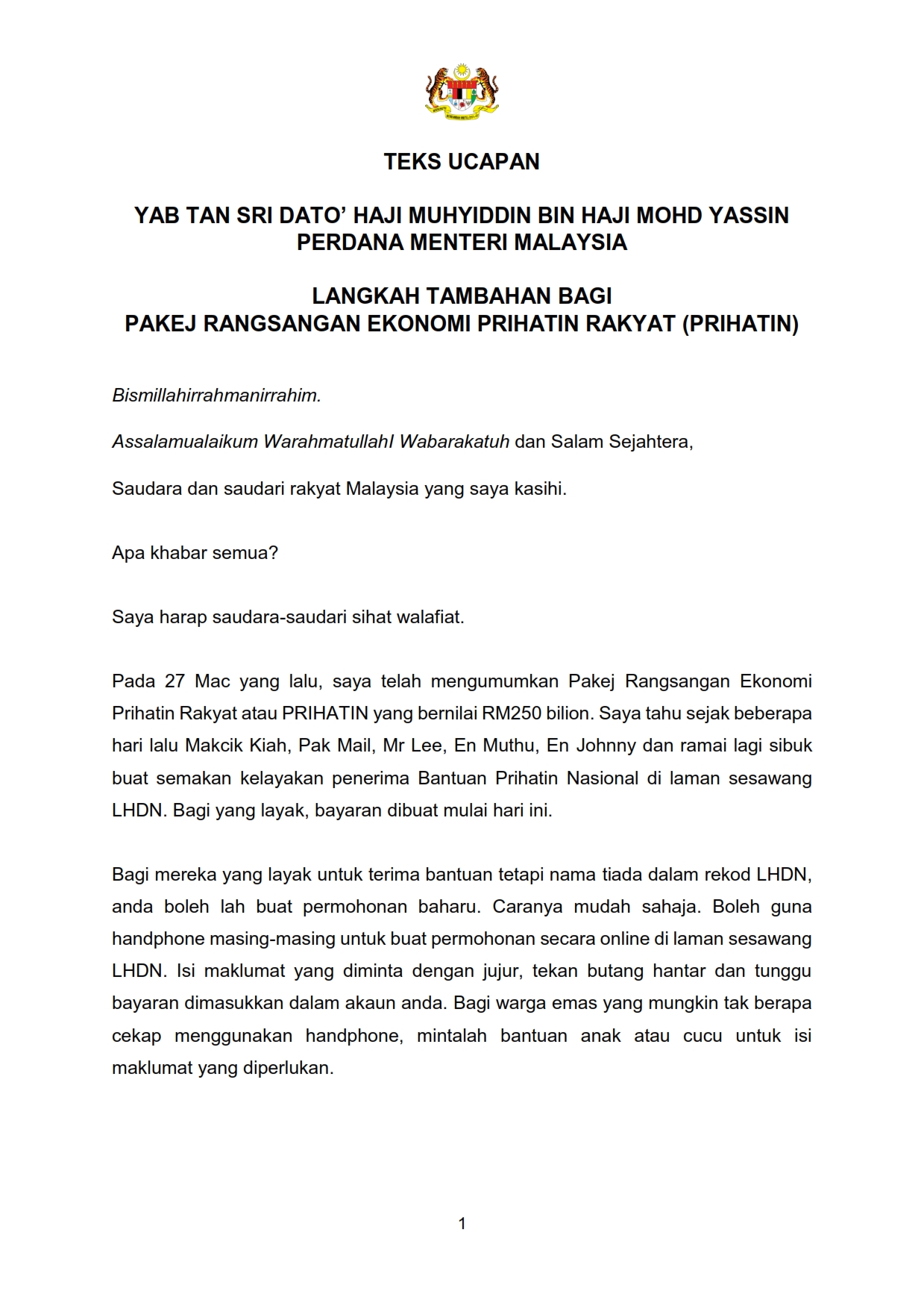 Teks Ucapan Perdana Menteri 06/04/2020 Aiman Siaran Media 06 April 2020 Hits: 2183 Rating: ( 0 Rating ) Please Rate Vote 1 Vote 2 Vote 3 Vote 4 Vote 5 Lihat / Muat Turun PDF Facebook Twitter Prev Next