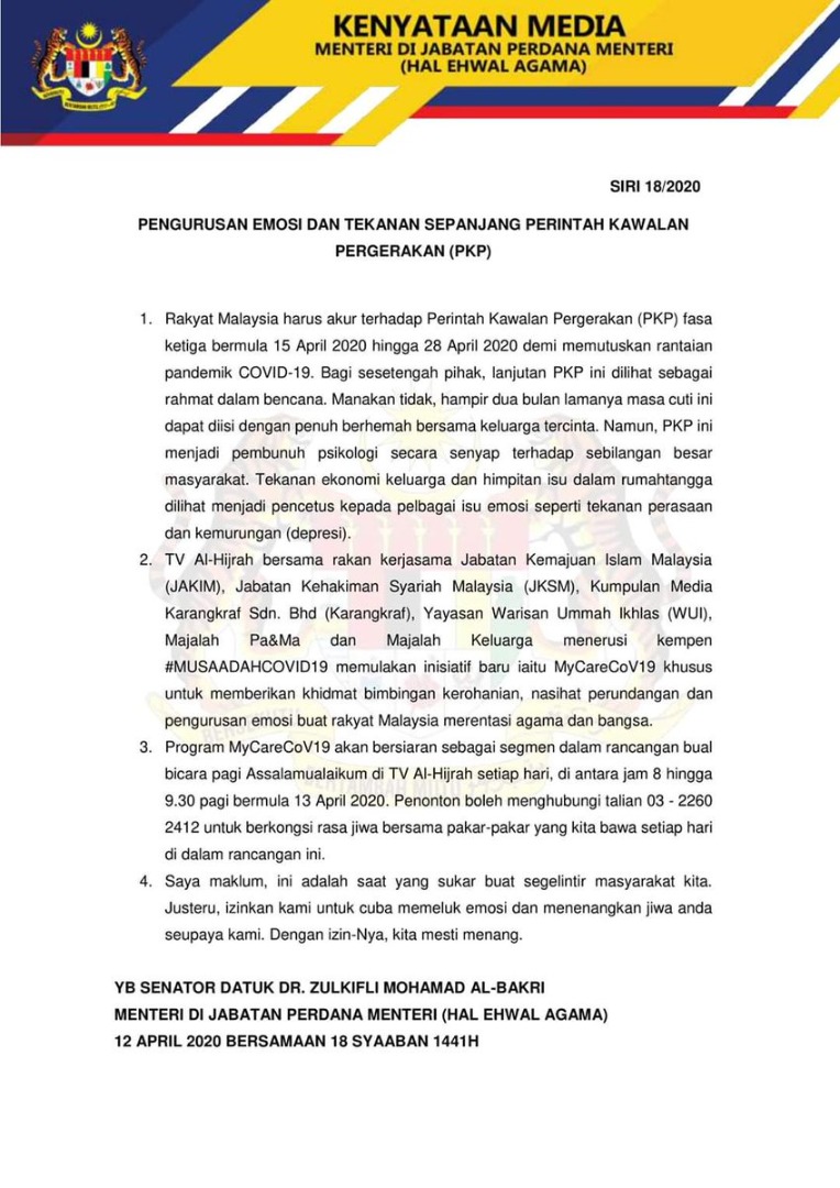 Kenyataan Media Menteri JPM (Agama) 12/04/2020 Aiman Siaran Media 12 April 2020 Jumlah paparan: 791 Rating: ( 0 Rating ) Sila beri kadar Undi 1 Undi 2 Undi 3 Undi 4 Undi 5 Lihat / Muat Turun JPG Facebook Twitter Seterusnya Seterusnya