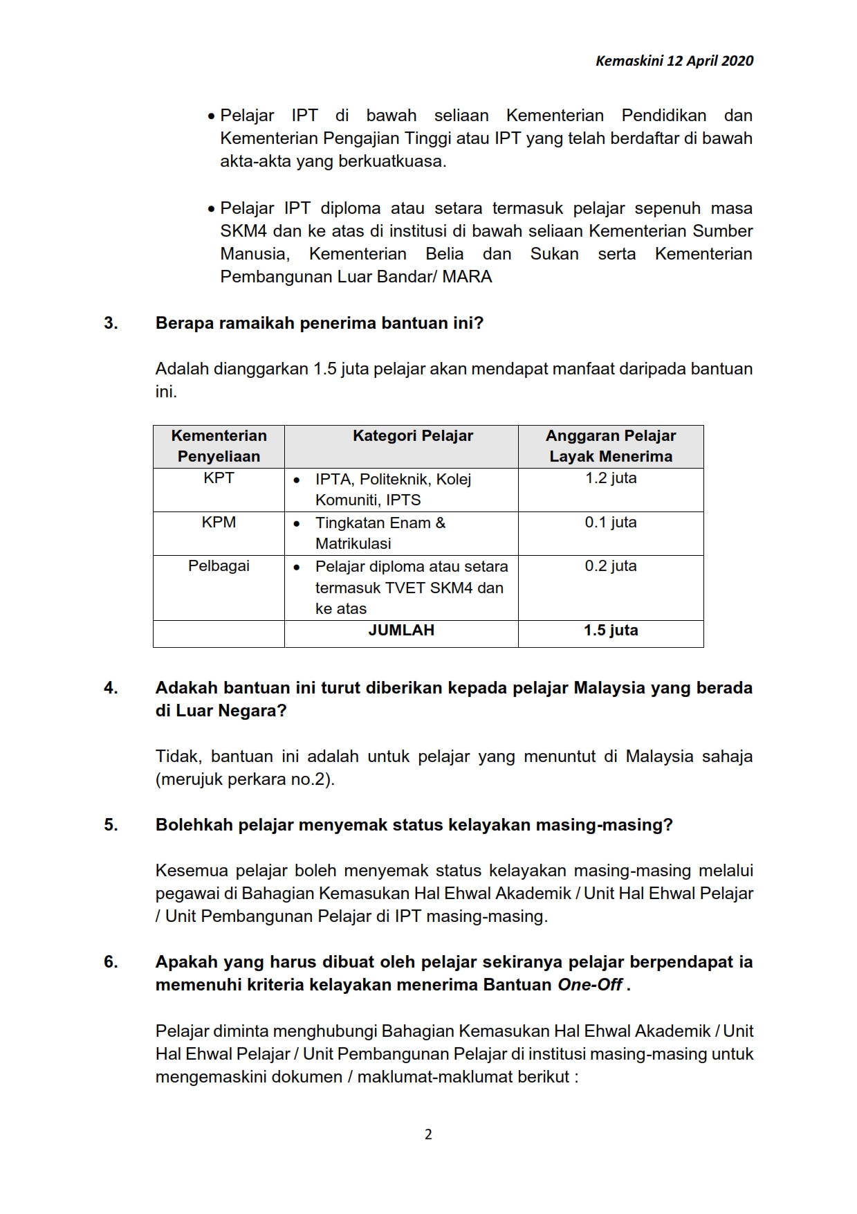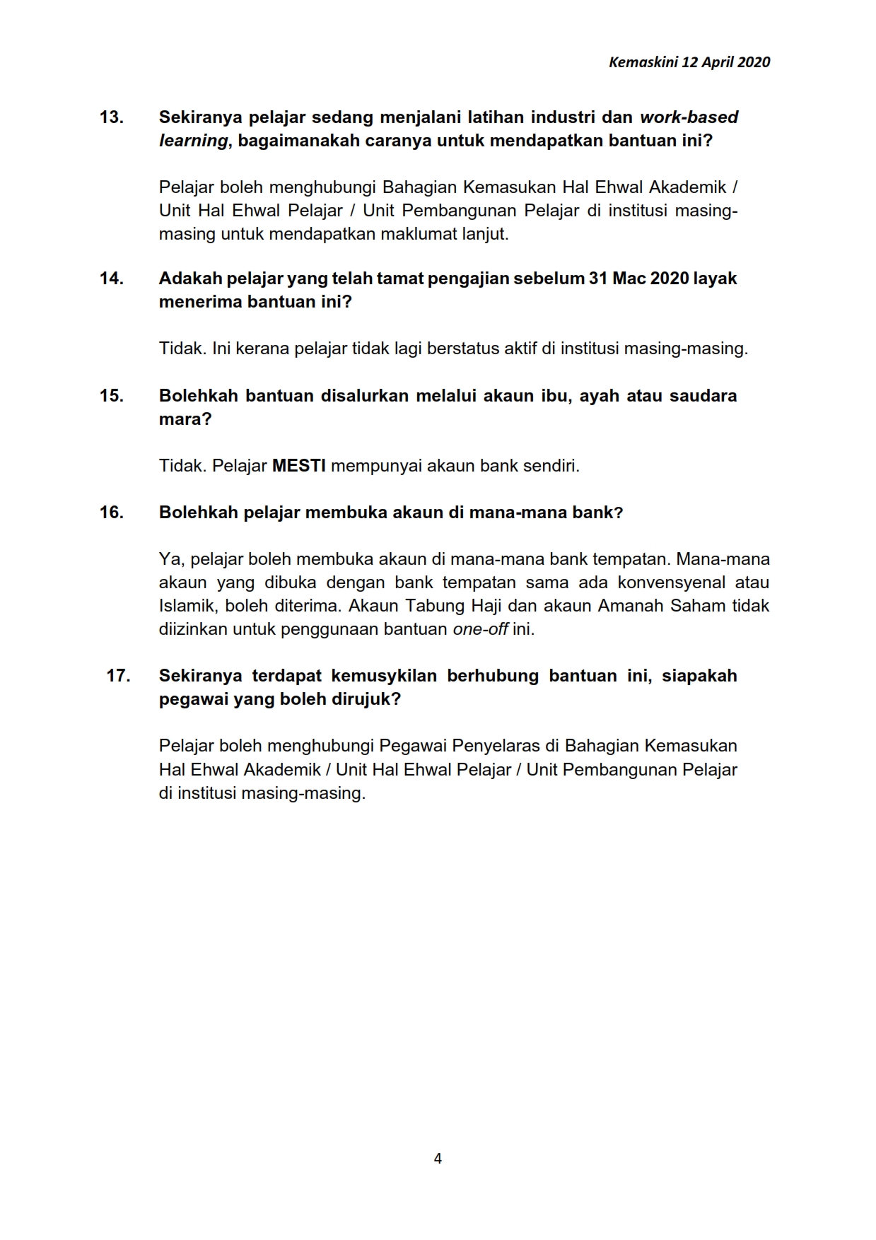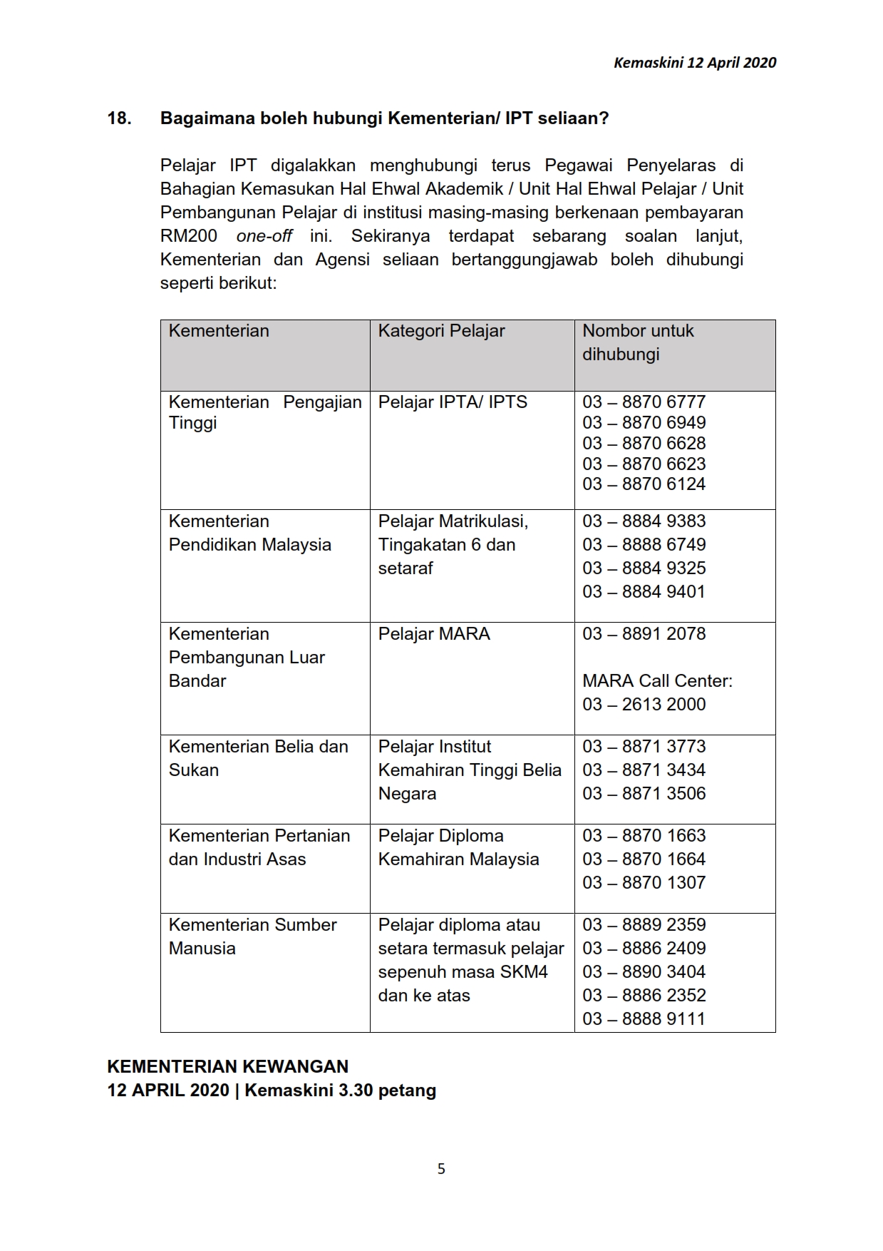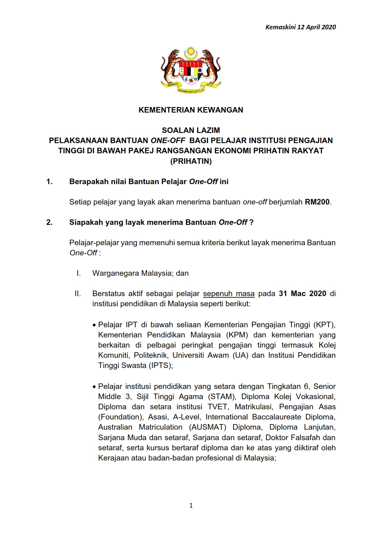 Soalan Lazim FAQ Berkaitan Perintah Kawalan Pergerakan Kementerian Kewangan Malaysia (MOF) 12/04/2020 Aiman FAQ 12 April 2020 Jumlah paparan: 1257 Rating: ( 0 Rating ) Sila beri kadar Undi 1 Undi 2 Undi 3 Undi 4 Undi 5 /bencana2/images/ndcc/documents/covid19/faq/SIARAN_MEDIA_KKM_20200412_06.pdf Facebook Twitter Seterusnya Seterusnya
