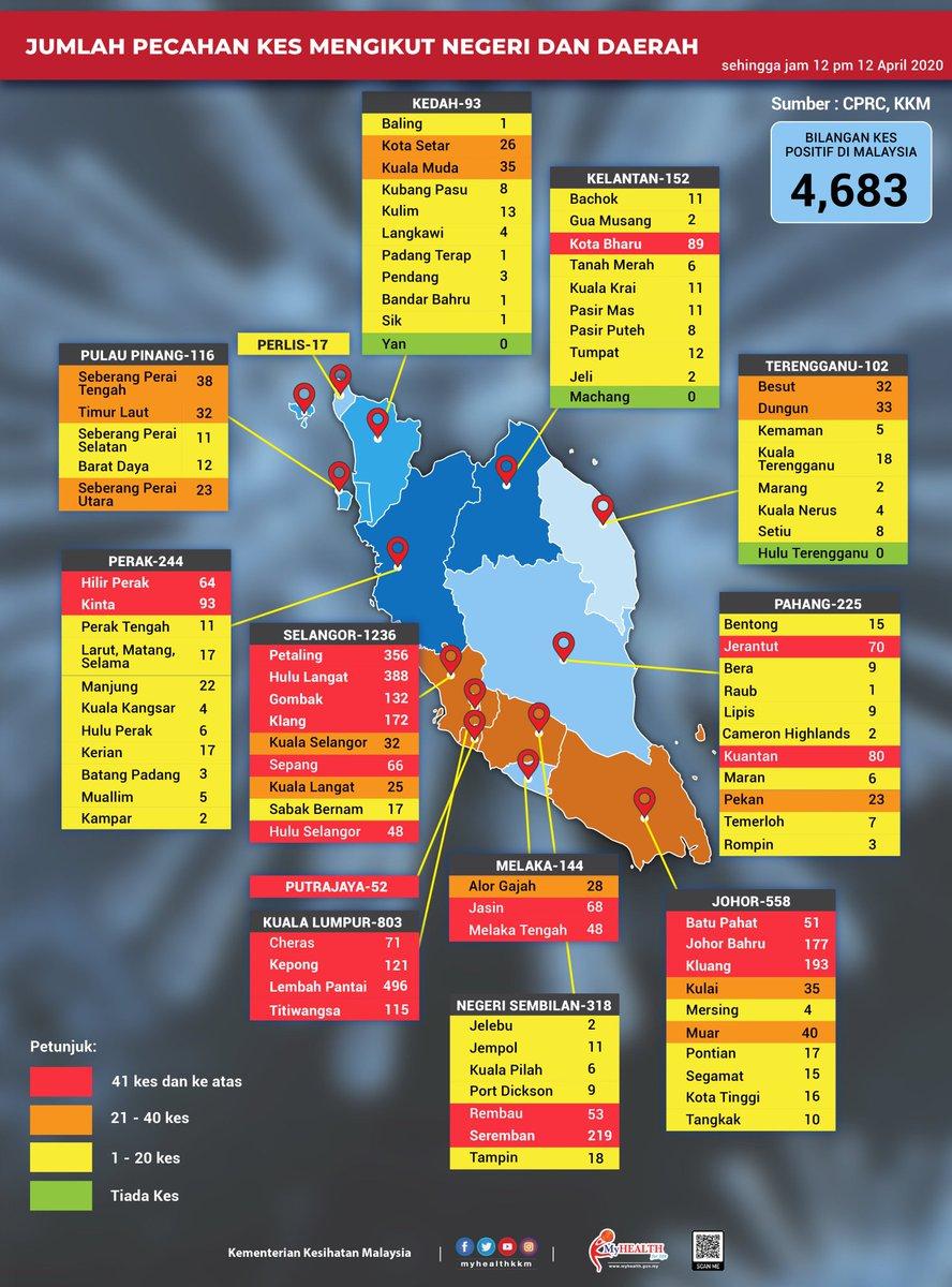 Statistik Pecahan Kes COVID-19 Mengikut Negeri & Daerah Di Malaysia 12/04/2020 1200 PM Aiman Siaran Media 12 April 2020 Jumlah paparan: 573 Rating: ( 0 Rating ) Sila beri kadar Undi 1 Undi 2 Undi 3 Undi 4 Undi 5 Lihat / Muat Turun JPG 1 Lihat / Muat Turun JPG 2 Facebook Twitter Seterusnya Seterusnya