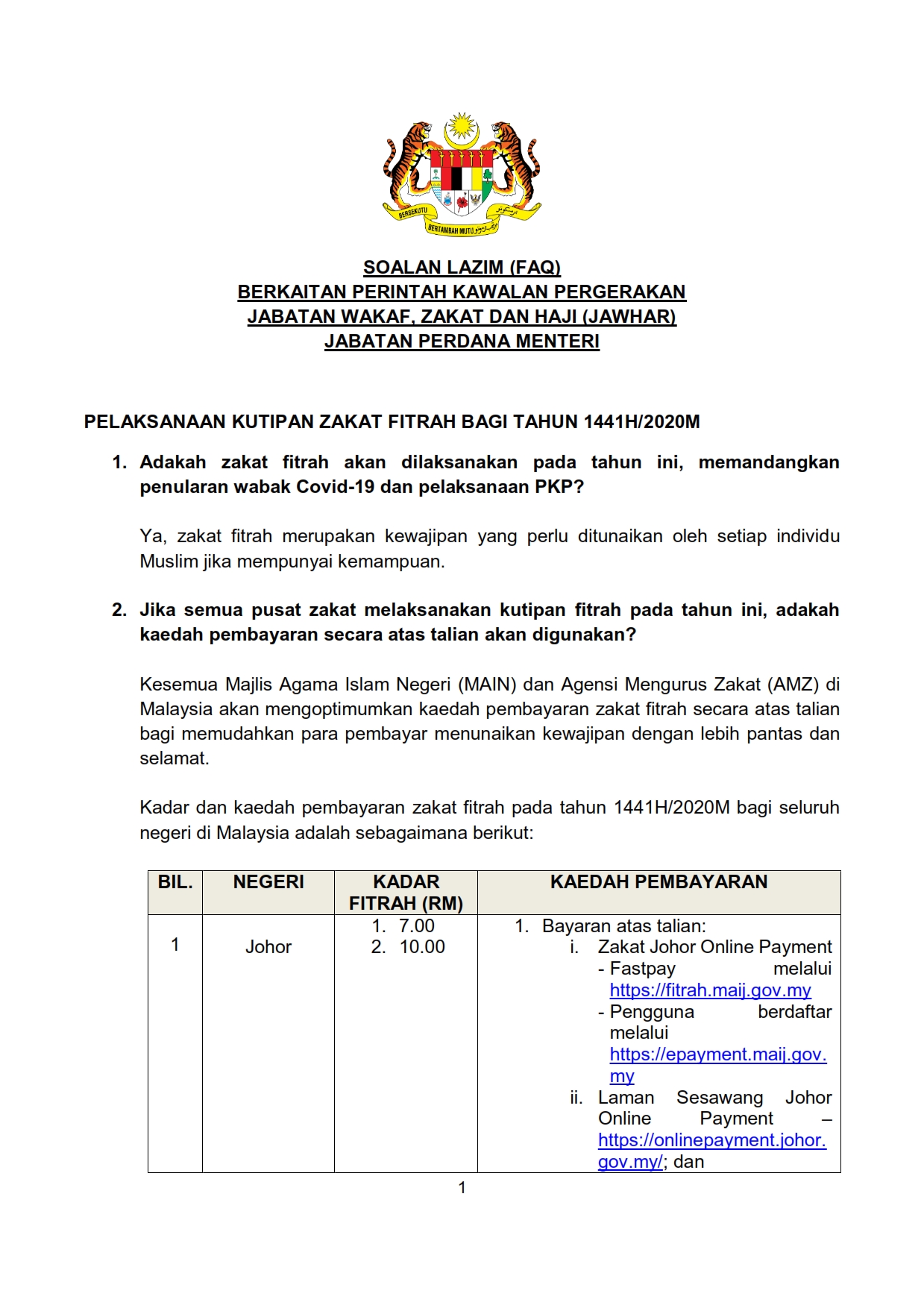 Soalan Lazim FAQ Mengenai Perintah Kawalan Pergerakan JAWHAR 20/04/2020 Aiman FAQ 20 April 2020 Jumlah paparan: 1386 Rating: ( 0 Rating ) Sila beri kadar Undi 1 Undi 2 Undi 3 Undi 4 Undi 5 Lihat / Muat Turun PDF Muat Turun JPG 1 Muat Turun JPG 2 Facebook Twitter Seterusnya Seterusnya