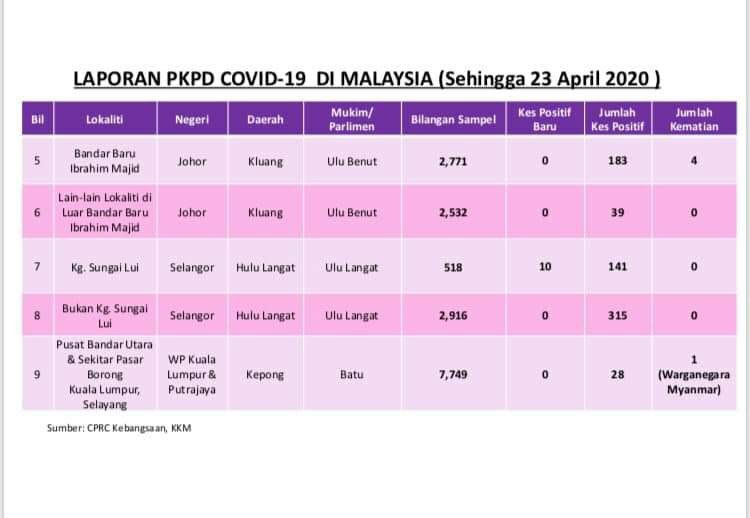 Laporan PKPD COVID-19 Di Malaysia 23/04/2020 Asrul Siaran Media 23 April 2020 Jumlah paparan: 760 Rating: ( 0 Rating ) Sila beri kadar Undi 1 Undi 2 Undi 3 Undi 4 Undi 5 Lihat / Muat Turun JPG 1 Lihat / Muat Turun JPG 2 Facebook Twitter Seterusnya Seterusnya