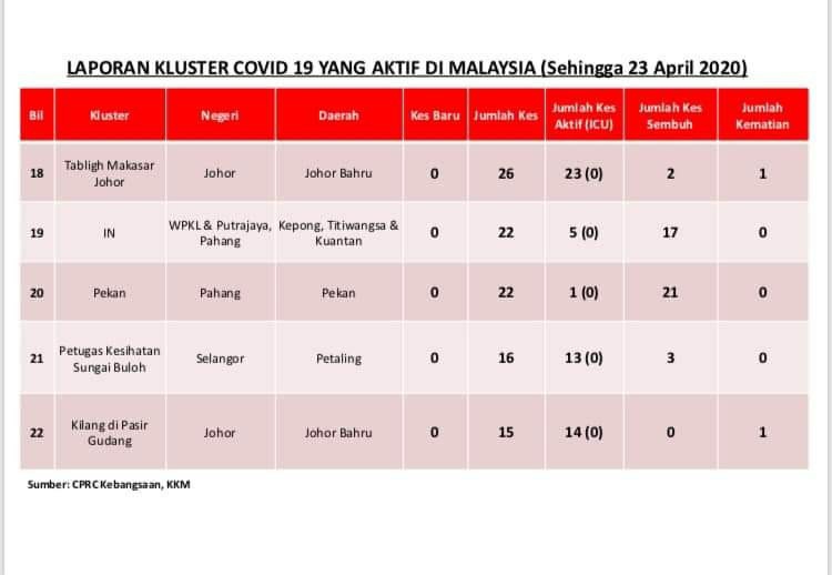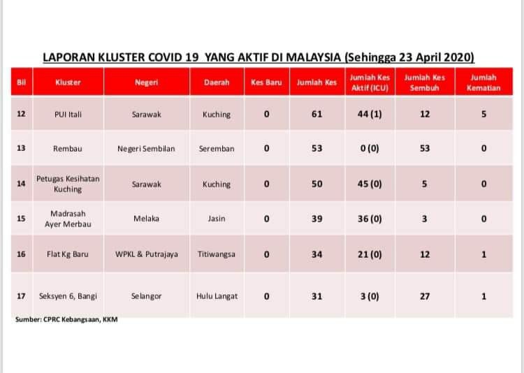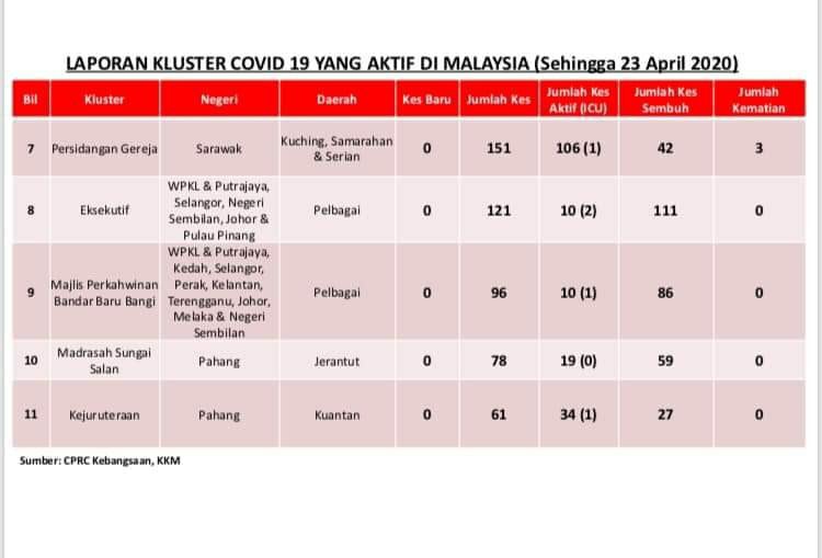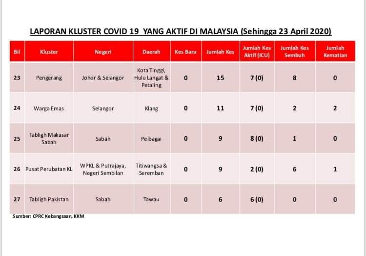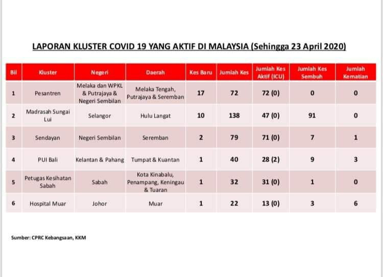 Laporan Kluster COVID-19 Di Malaysia 23/04/2020 Asrul Siaran Media 23 April 2020 Jumlah paparan: 1026 Rating: ( 0 Rating ) Sila beri kadar Undi 1 Undi 2 Undi 3 Undi 4 Undi 5 Facebook Twitter Seterusnya Seterusnya