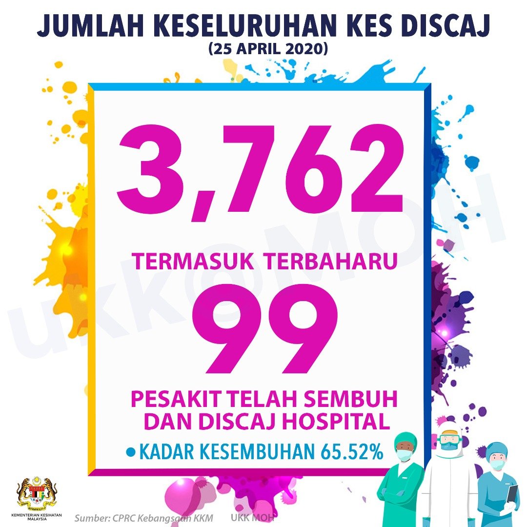 COVID-19 - Jumlah Keseluruhan Kes Discaj 25/04/2020 Asrul Siaran Media 25 April 2020 Jumlah paparan: 952 Rating: ( 0 Rating ) Sila beri kadar Undi 1 Undi 2 Undi 3 Undi 4 Undi 5 Lihat / Muat Turun JPG Facebook Twitter Seterusnya Seterusnya