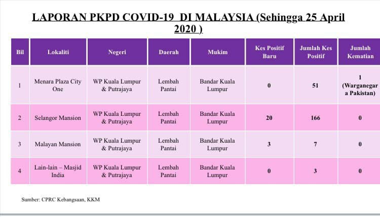 Laporan PKPD COVID-19 Di Malaysia 25/04/2020 Asrul Siaran Media 25 April 2020 Jumlah paparan: 918 Rating: ( 0 Rating ) Sila beri kadar Undi 1 Undi 2 Undi 3 Undi 4 Undi 5 Lihat / Muat Turun JPG 1 Lihat / Muat Turun JPG 2 Facebook Twitter Seterusnya Seterusnya