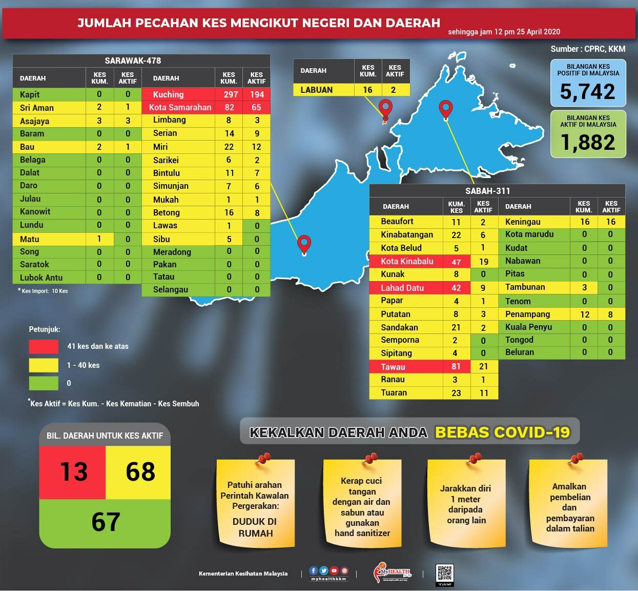 Statistik Pecahan Kes COVID-19 Mengikut Negeri & Daerah Di Malaysia 25/04/2020 1200 PM Asrul Siaran Media 25 April 2020 Jumlah paparan: 1026 Rating: ( 0 Rating ) Sila beri kadar Undi 1 Undi 2 Undi 3 Undi 4 Undi 5 Lihat / Muat Turun JPG 1 Lihat / Muat Turun JPG 2 Facebook Twitter Seterusnya Seterusnya