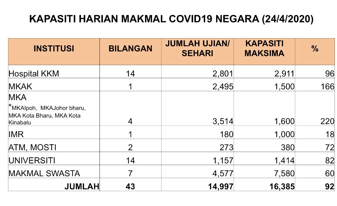 Kapasiti Harian Makmal COVID-19 Negara 24/04/2020 Asrul Siaran Media 24 April 2020 Jumlah paparan: 621 Rating: ( 0 Rating ) Sila beri kadar Undi 1 Undi 2 Undi 3 Undi 4 Undi 5 Lihat / Muat Turun JPG Facebook Twitter Seterusnya Seterusnya