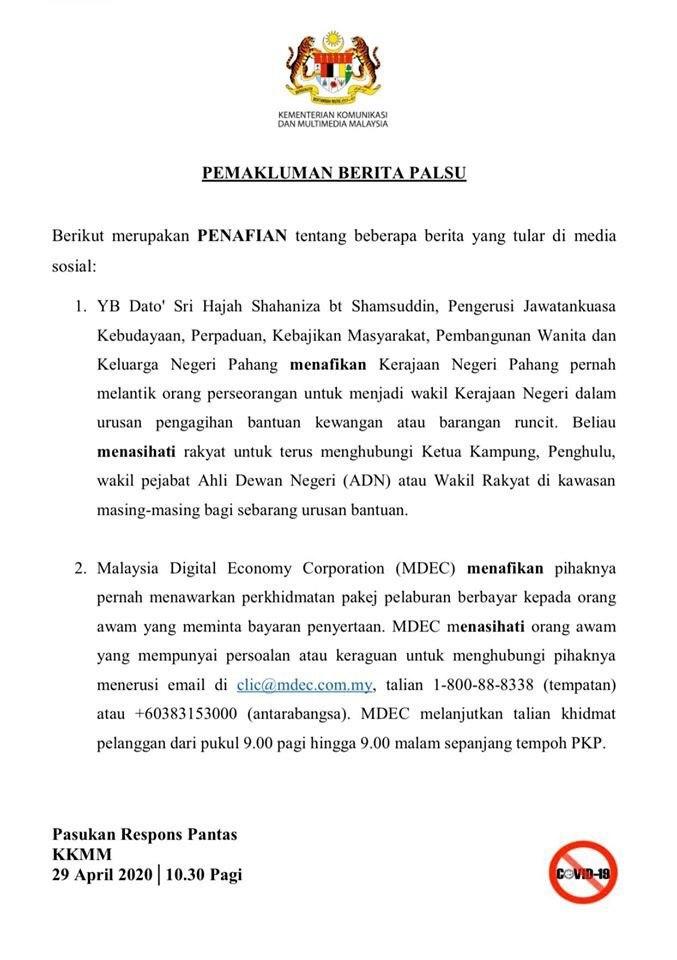 Pemakluman Berita Palsu SKMM 29/04/2020 1030 AM Asrul Siaran Media 29 April 2020 Jumlah paparan: 719 Rating: ( 0 Rating ) Sila beri kadar Undi 1 Undi 2 Undi 3 Undi 4 Undi 5 Lihat / Muat Turun JPG Facebook Twitter Seterusnya Seterusnya