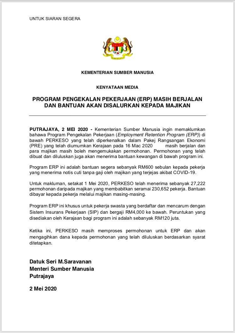 Kenyataan Media Kementerian Sumber Manusia 02/05/2020 Asrul Siaran Media 02 Mei 2020 Jumlah paparan: 963 Rating: ( 0 Rating ) Sila beri kadar Undi 1 Undi 2 Undi 3 Undi 4 Undi 5 Lihat / Muat Turun JPG Facebook Twitter Seterusnya Seterusnya