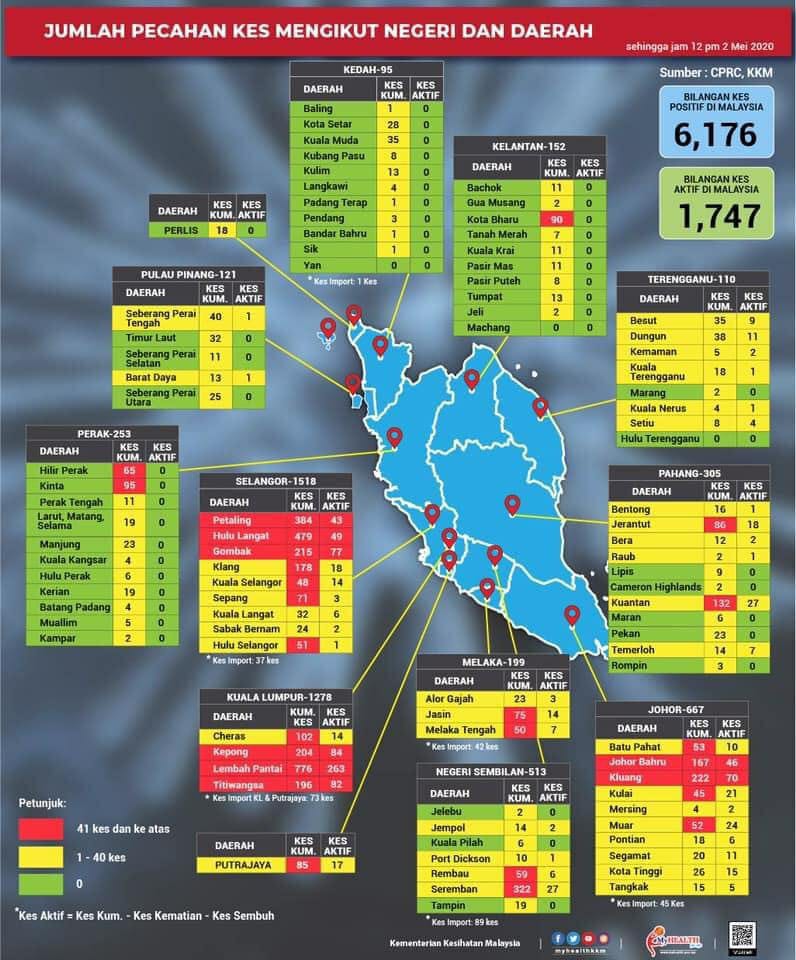 Statistik Pecahan Kes COVID-19 Mengikut Negeri & Daerah Di Malaysia 03/05/2020 1200 PM Aiman Siaran Media 03 Mei 2020 Jumlah paparan: 1173 Rating: ( 0 Rating ) Sila beri kadar Undi 1 Undi 2 Undi 3 Undi 4 Undi 5 Lihat / Muat Turun JPG 1 Lihat / Muat Turun JPG 2 Facebook Twitter Seterusnya Seterusnya