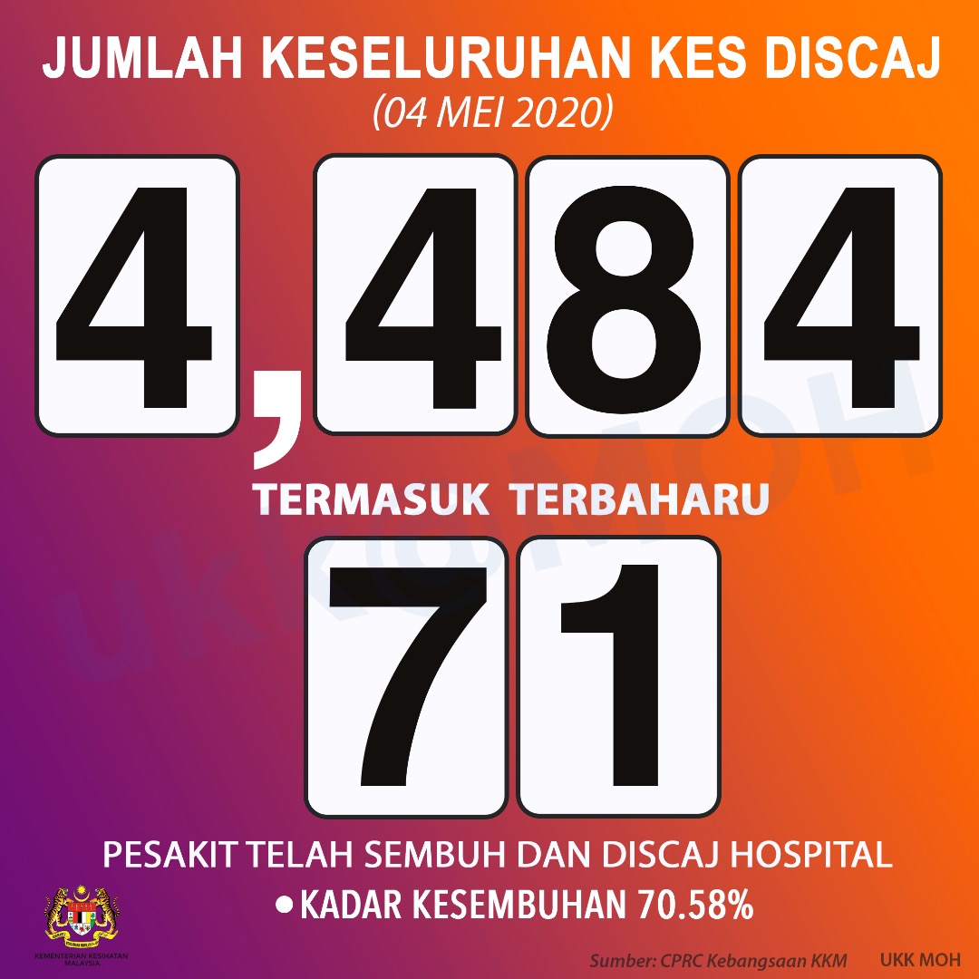 COVID-19 - Jumlah Keseluruhan Kes Discaj 04/05/2020 Asrul Siaran Media 04 Mei 2020 Jumlah paparan: 892 Rating: ( 0 Rating ) Sila beri kadar Undi 1 Undi 2 Undi 3 Undi 4 Undi 5 Lihat / Muat Turun JPG Facebook Twitter Seterusnya Seterusnya