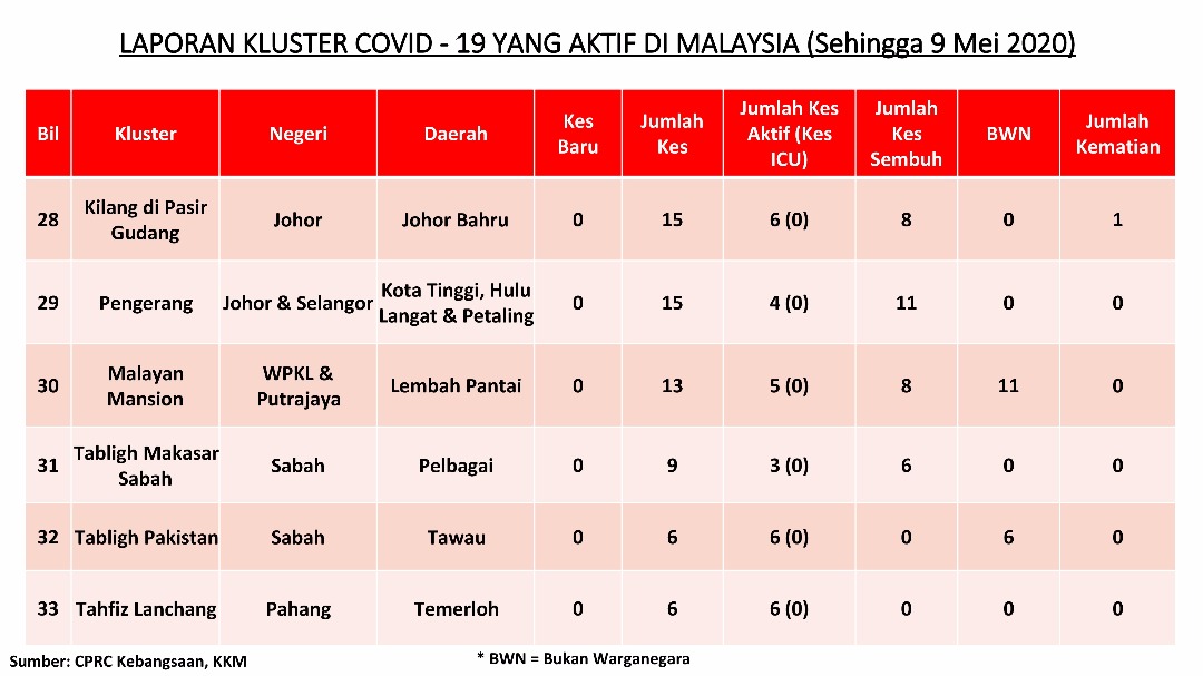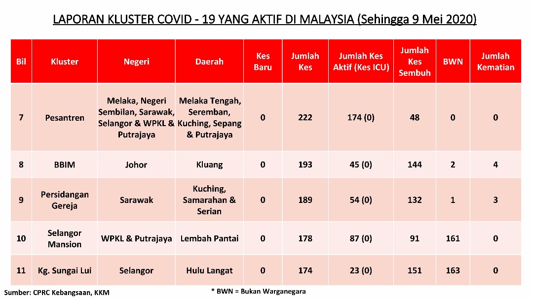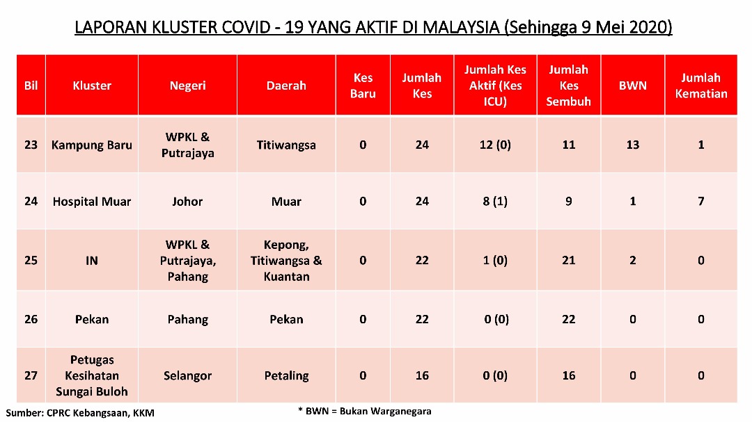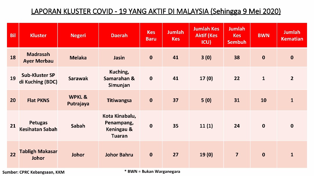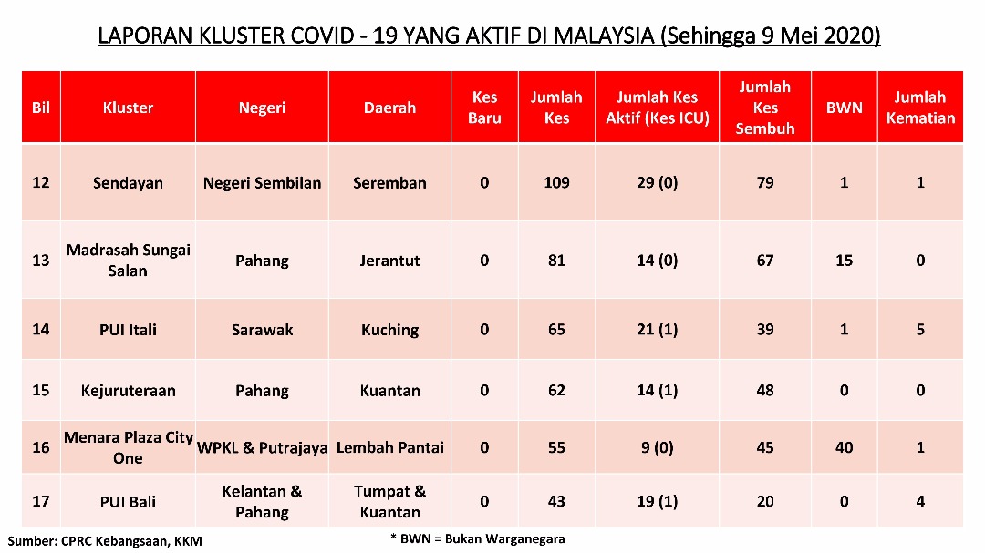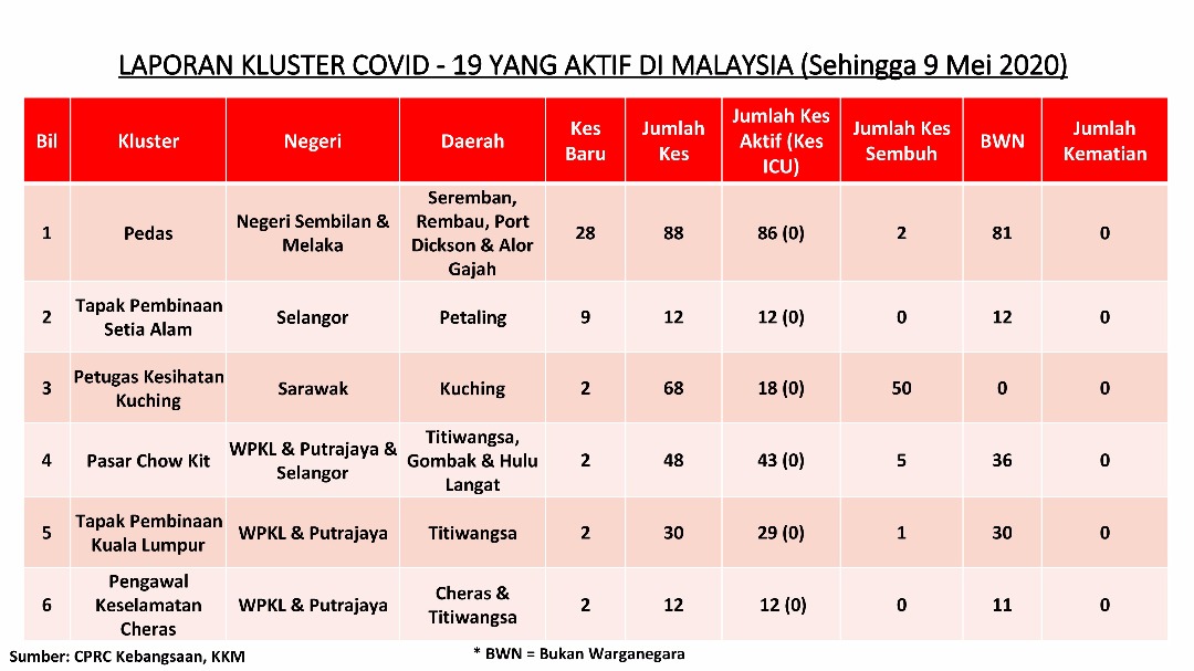 Laporan Kluster COVID-19 Aktif Di Malaysia 09/05/2020 Asrul Siaran Media 09 Mei 2020 Jumlah paparan: 546 Rating: ( 0 Rating ) Sila beri kadar Undi 1 Undi 2 Undi 3 Undi 4 Undi 5 Facebook Twitter Seterusnya Seterusnya