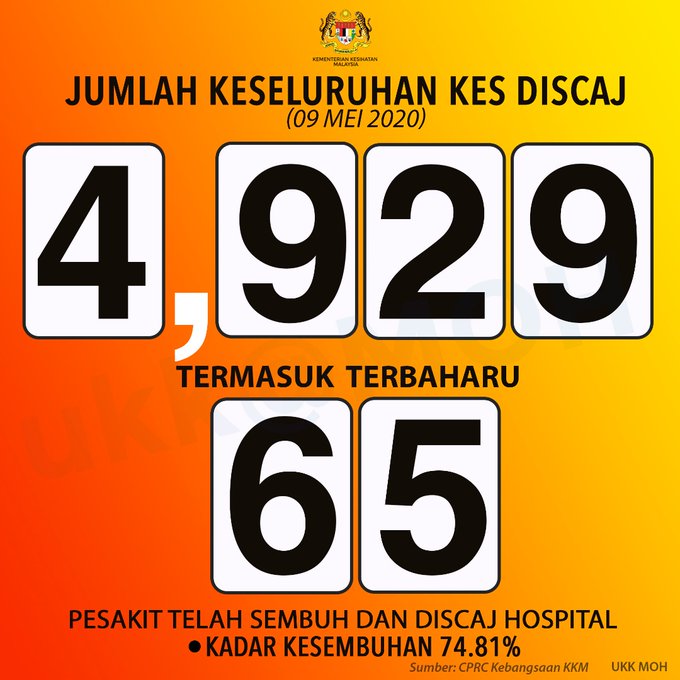 COVID-19 - Jumlah Keseluruhan Kes Discaj 09/05/2020 Asrul Siaran Media 09 Mei 2020 Jumlah paparan: 768 Rating: ( 0 Rating ) Sila beri kadar Undi 1 Undi 2 Undi 3 Undi 4 Undi 5 Lihat / Muat Turun JPG Facebook Twitter Seterusnya Seterusnya