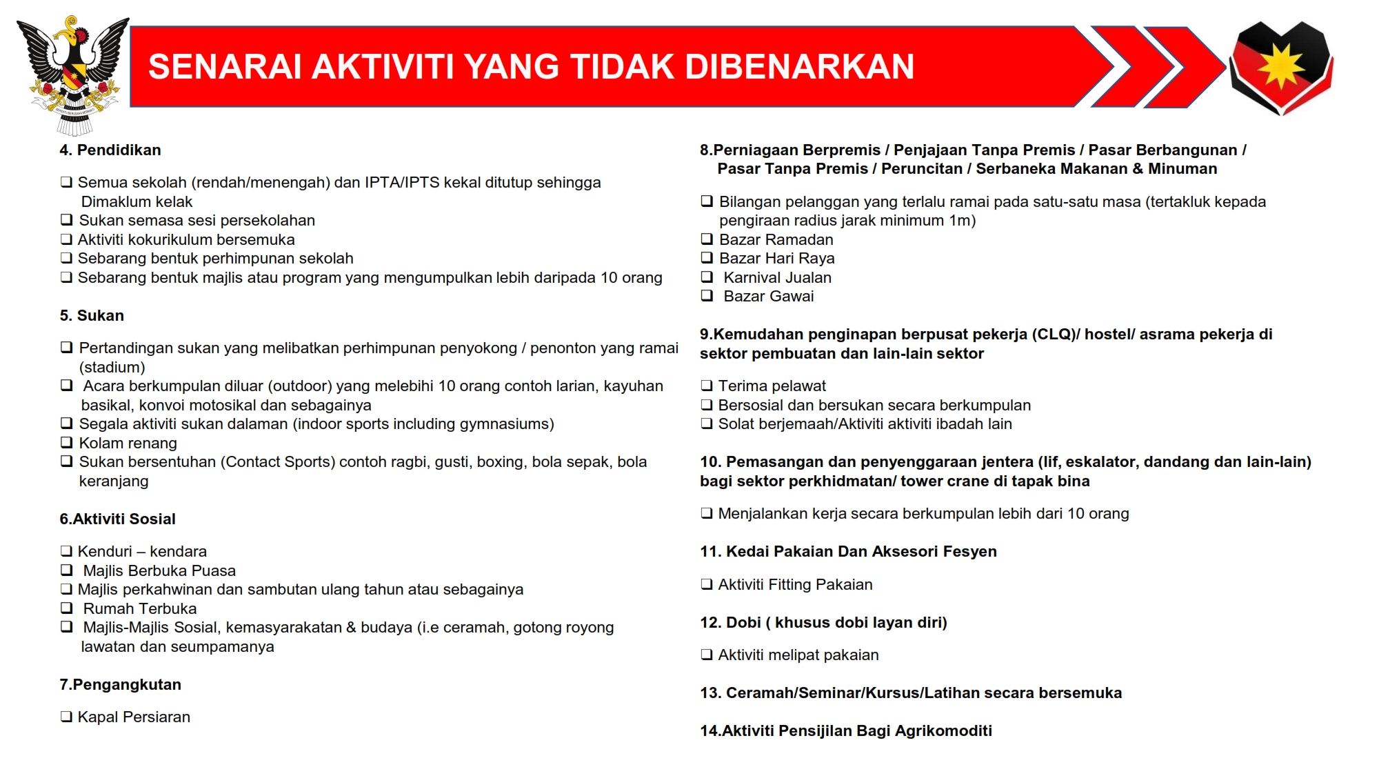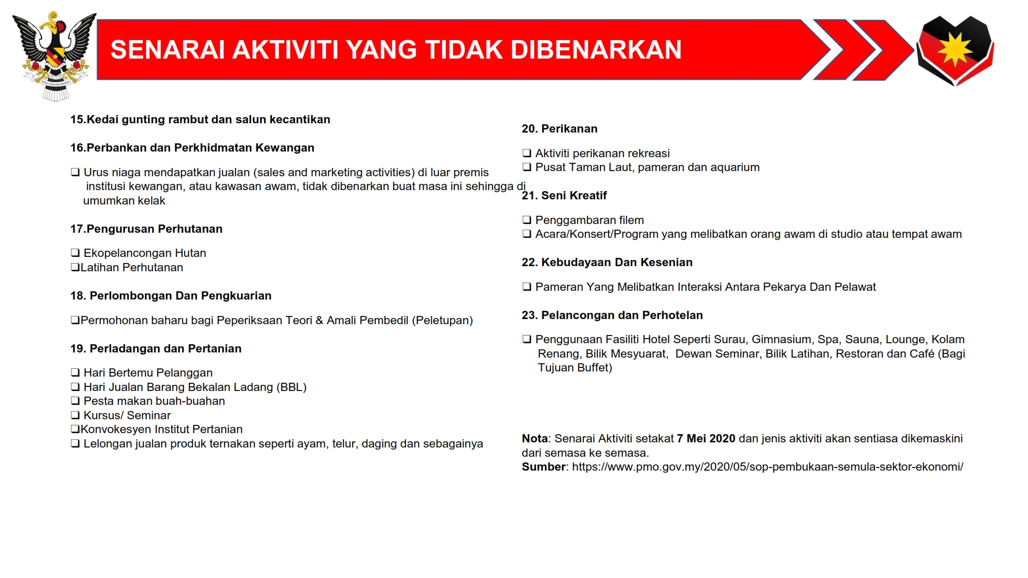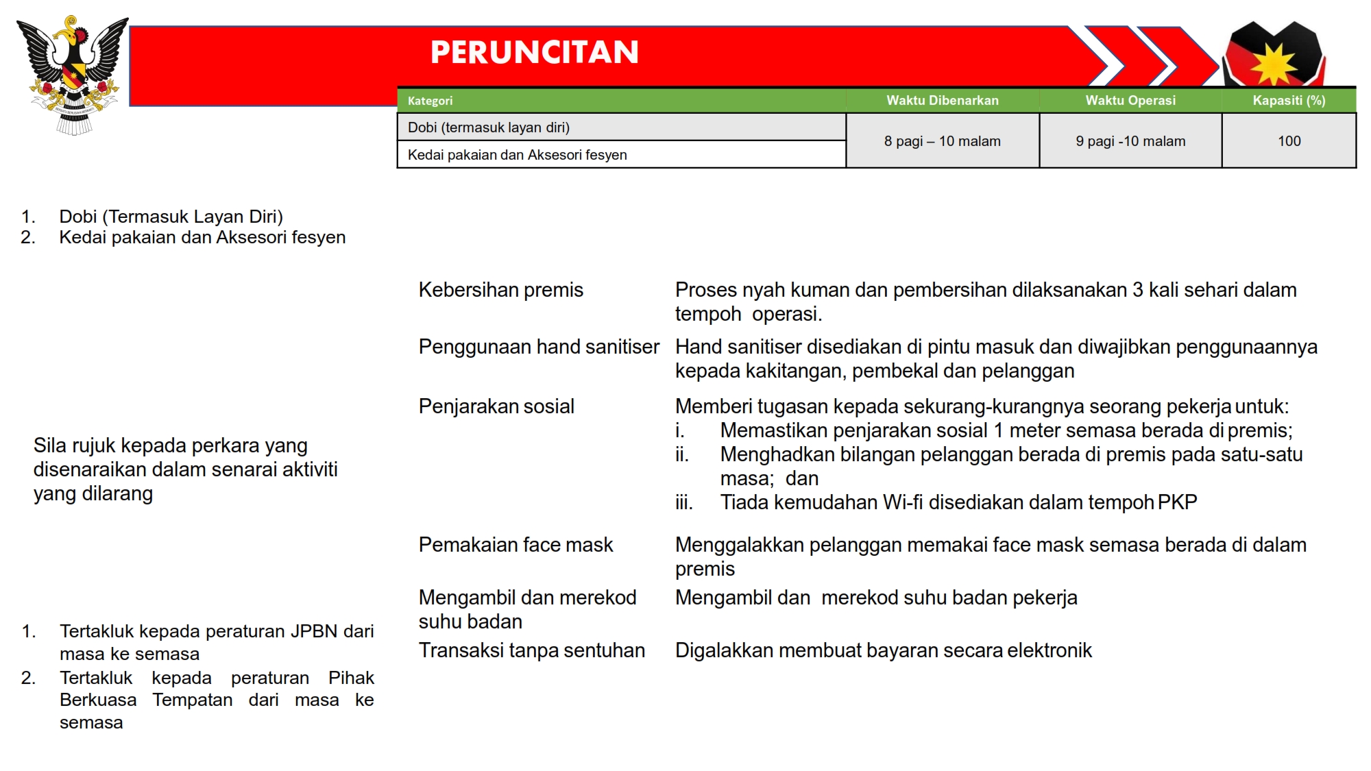 Garis Panduan Operasi (SOP) Industri dan Perniagaan Semasa Tempoh Perintah Kawalan Pergerakan Bersyarat 04/05/2020 Aiman Siaran Media 10 Mei 2020 Jumlah paparan: 1780 Rating: ( 0 Rating ) Sila beri kadar Undi 1 Undi 2 Undi 3 Undi 4 Undi 5 Lihat / Muat Turun PDF Facebook Twitter Seterusnya Seterusnya