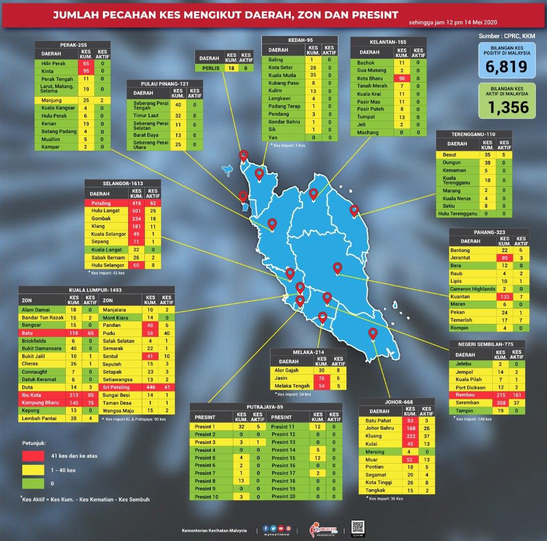 Statistik Pecahan Kes COVID-19 Mengikut Negeri & Daerah Di Malaysia 14/05/2020 1200 PM Asrul Siaran Media 14 Mei 2020 Jumlah paparan: 1382 Rating: ( 0 Rating ) Sila beri kadar Undi 1 Undi 2 Undi 3 Undi 4 Undi 5 Lihat / Muat Turun JPG 1 Lihat / Muat Turun JPG 2 Facebook Twitter Seterusnya Seterusnya