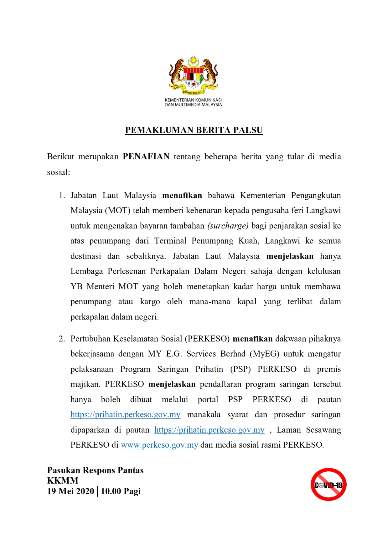 Pemakluman Berita Palsu SKMM 19/05/2020 1000 AM Aiman Siaran Media 19 Mei 2020 Jumlah paparan: 1192 Rating: ( 0 Rating ) Sila beri kadar Undi 1 Undi 2 Undi 3 Undi 4 Undi 5 Lihat / Muat Turun PDF Facebook Twitter Seterusnya Seterusnya