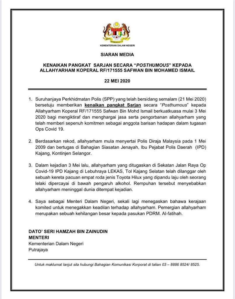 Kenyataan Media Kementerian Dalam Negeri 22/05/2020 Aiman Siaran Media 22 Mei 2020 Jumlah paparan: 1080 Rating: ( 0 Rating ) Sila beri kadar Undi 1 Undi 2 Undi 3 Undi 4 Undi 5 Facebook Twitter Seterusnya Seterusnya