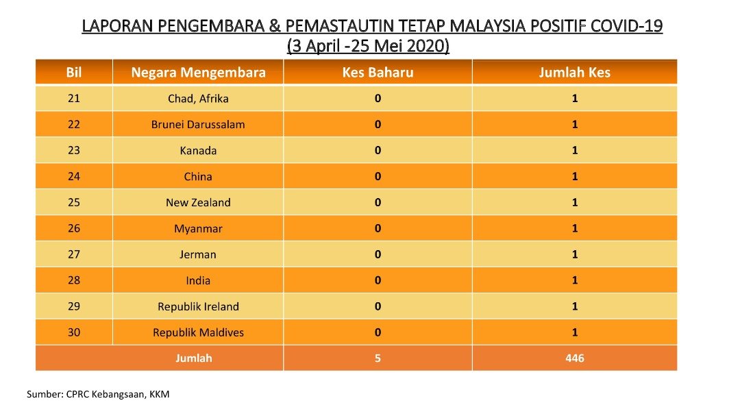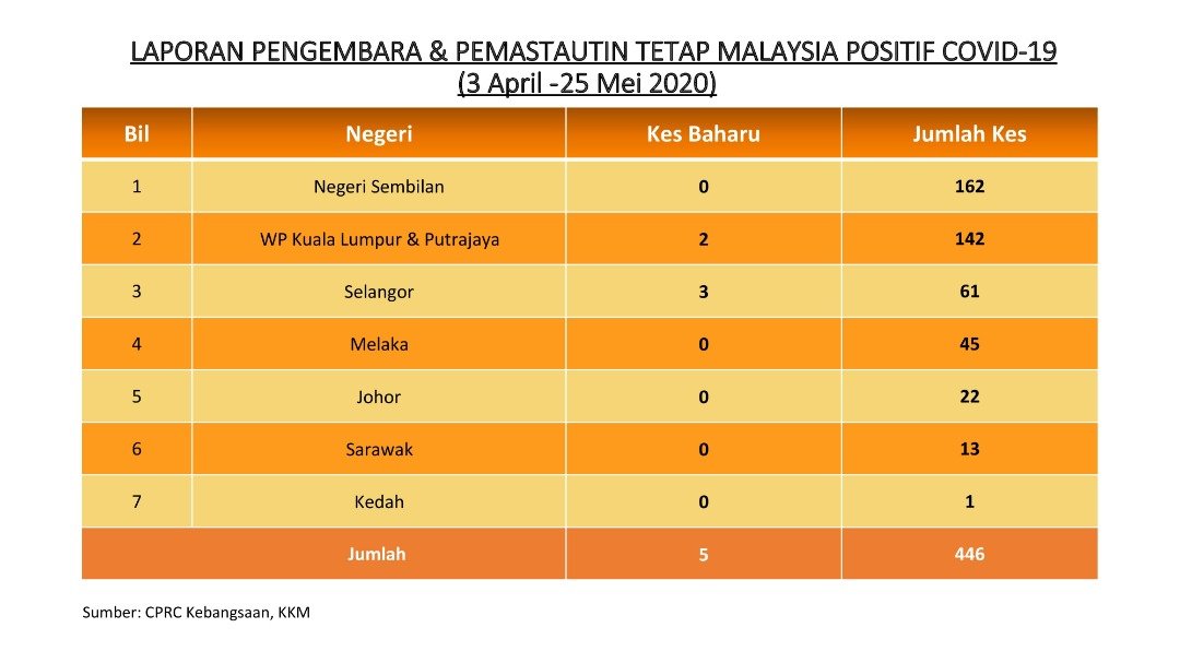 Laporan Pengembara & Pemastautin Tetap Malaysia Positif COVID-19 25/05/2020 Asrul Siaran Media 25 Mei 2020 Jumlah paparan: 931 Rating: ( 0 Rating ) Sila beri kadar Undi 1 Undi 2 Undi 3 Undi 4 Undi 5 Facebook Twitter Seterusnya Seterusnya
