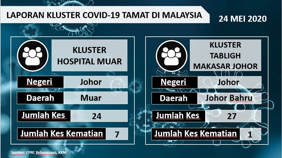 Laporan Kluster COVID-19 Tamat Di Malaysia 24/05/2020 Asrul Siaran Media 24 Mei 2020 Jumlah paparan: 578 Rating: ( 0 Rating ) Sila beri kadar Undi 1 Undi 2 Undi 3 Undi 4 Undi 5 Facebook Twitter Seterusnya Seterusnya