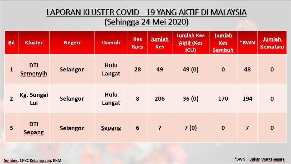 Laporan Kluster COVID-19 Aktif Di Malaysia 24/05/2020 Asrul Siaran Media 24 Mei 2020 Jumlah paparan: 902 Rating: ( 0 Rating ) Sila beri kadar Undi 1 Undi 2 Undi 3 Undi 4 Undi 5 Facebook Twitter Seterusnya Seterusnya