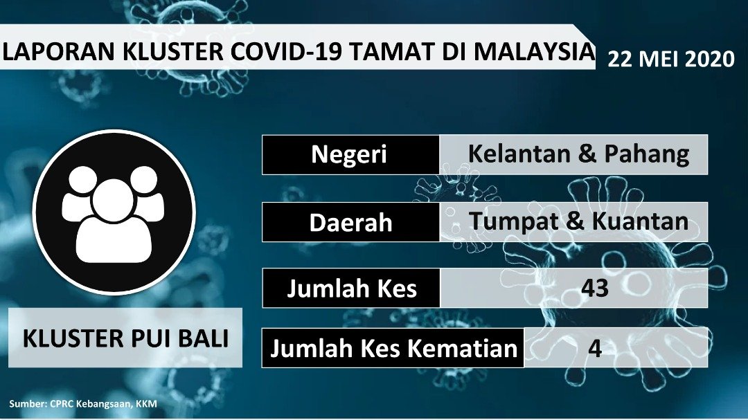 Laporan Kluster COVID-19 Tamat Di Malaysia 22/05/2020 Asrul Siaran Media 22 Mei 2020 Jumlah paparan: 899 Rating: ( 0 Rating ) Sila beri kadar Undi 1 Undi 2 Undi 3 Undi 4 Undi 5 Facebook Twitter Seterusnya Seterusnya