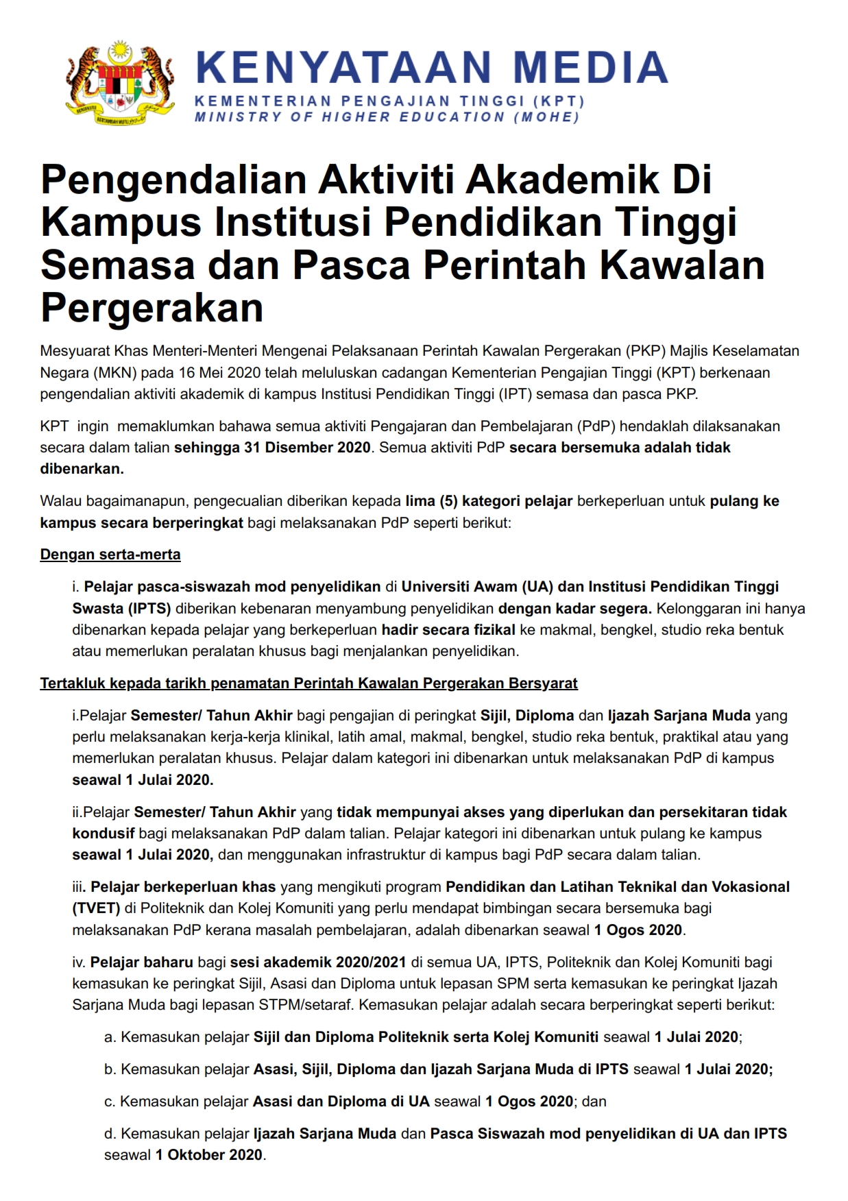 Kenyataan Media Kementerian Pengajian Tinggi 27/05/2020 Aiman Siaran Media 27 Mei 2020 Jumlah paparan: 862 Rating: ( 0 Rating ) Sila beri kadar Undi 1 Undi 2 Undi 3 Undi 4 Undi 5 Lihat / Muat Turun PDF Facebook Twitter Seterusnya Seterusnya